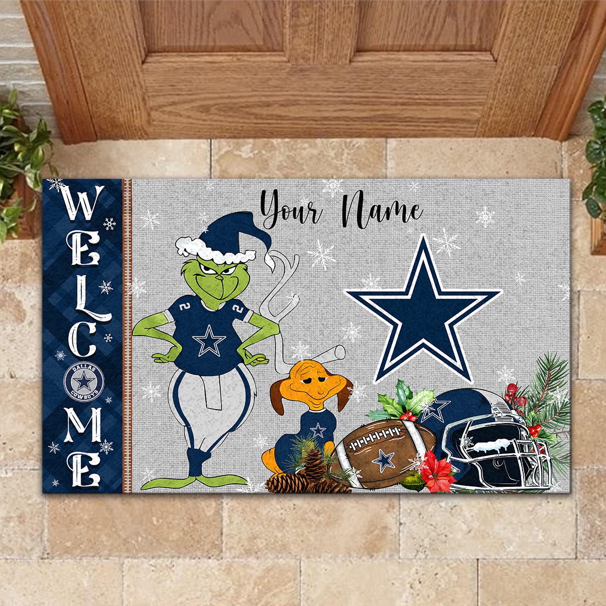 Dallas Cowboys Grinch Christmas Welcome Football Doormat