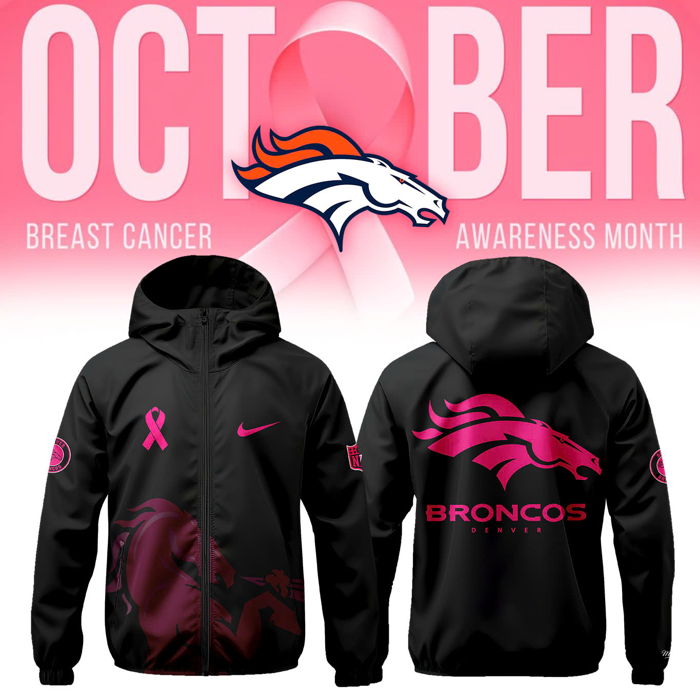 Denver Broncos Crucial Catch Club Pullover Zip Hoodie