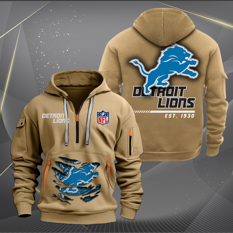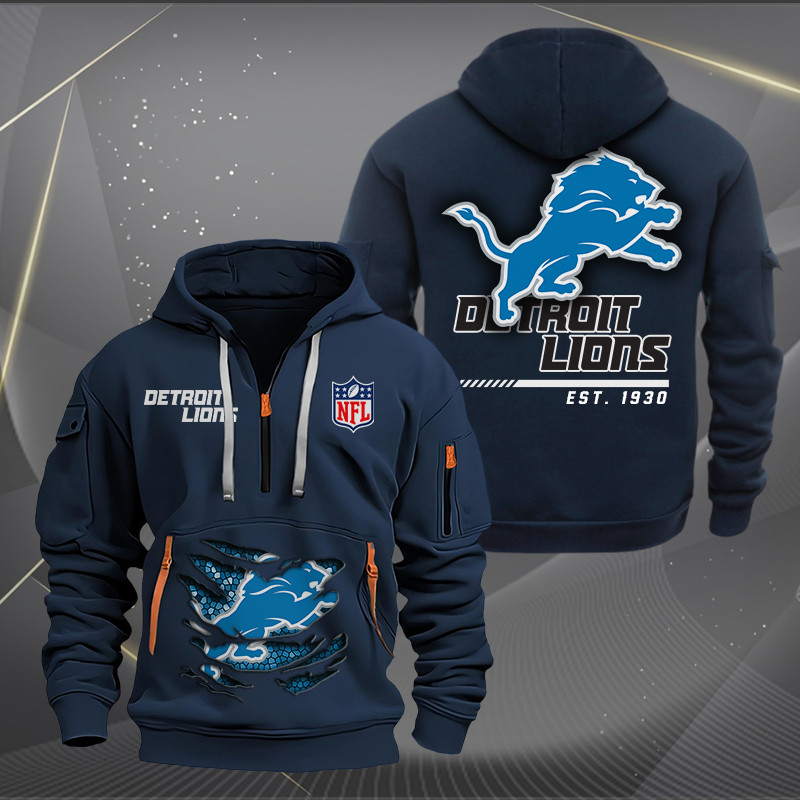 Detroit Lions New Personalized Quarter Zip Hoodie AZBTQZH000105