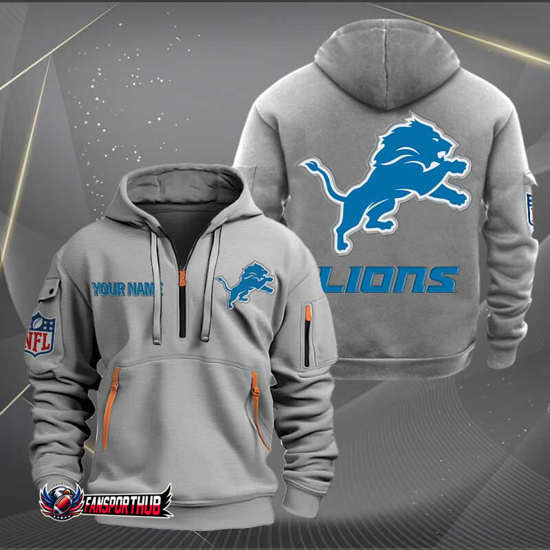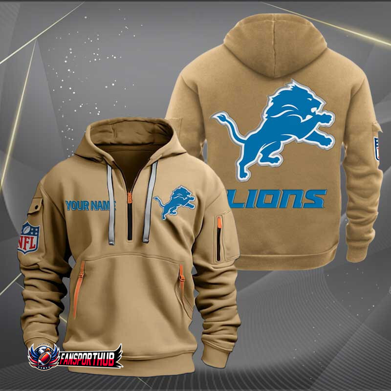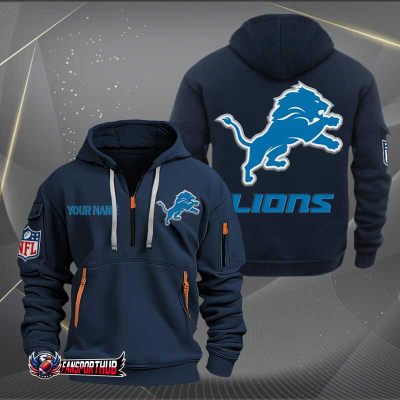 Detroit Lions New Personalized Quarter Zip Hoodie AZBTQZH000224