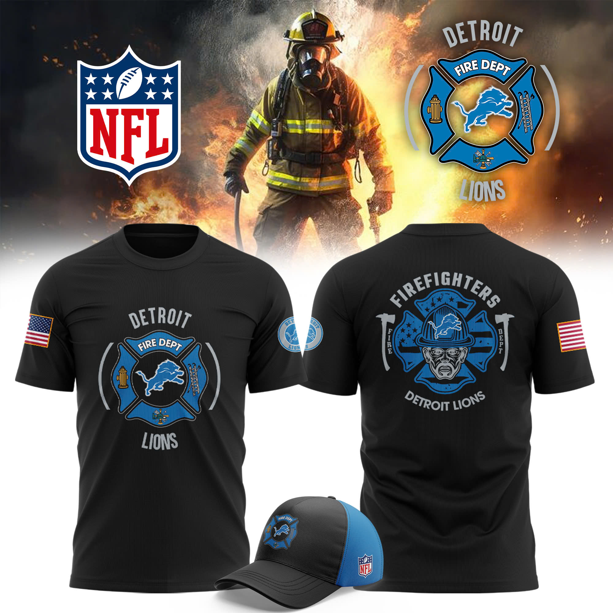 Detroit Lions x Firefighter Appreciation Night Premium Waffle Hoodie