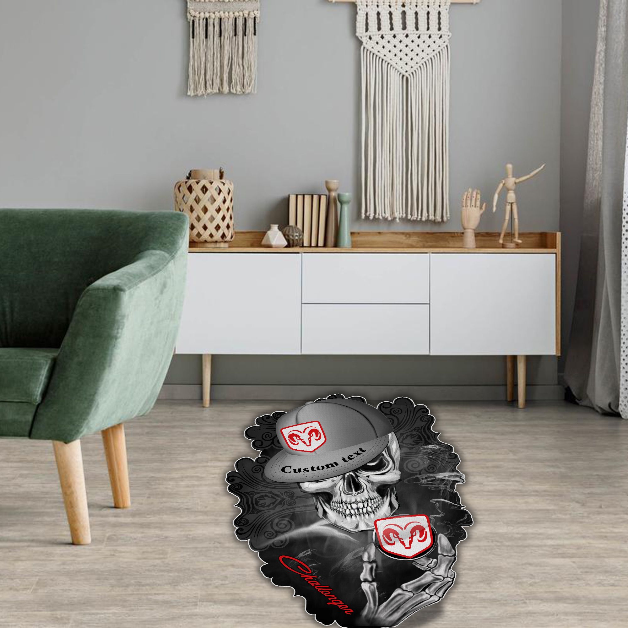 Dodge Challenger Skull Shaped Luxurious Doormat, Rug Home Decor, Custom name