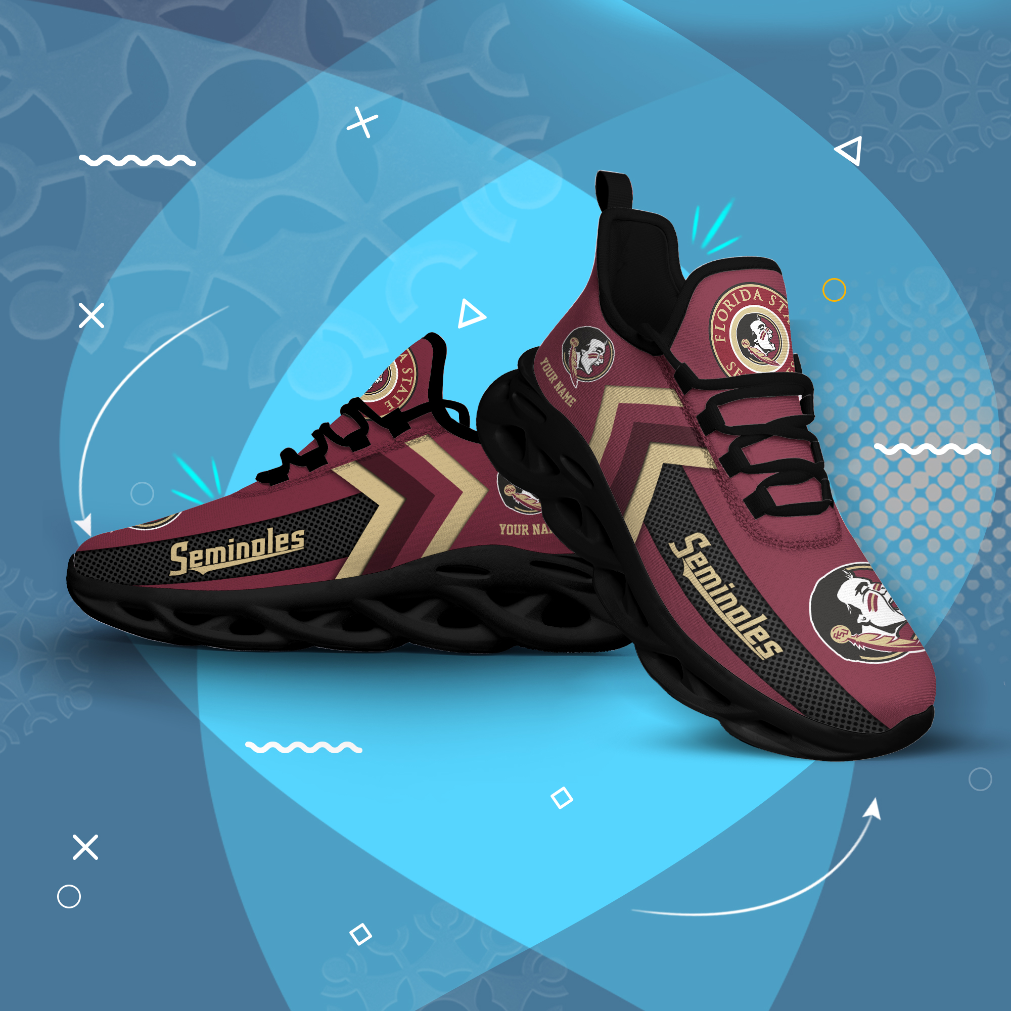 Florida State Seminoles Personalized Custom Name Max Soul Shoes DS003