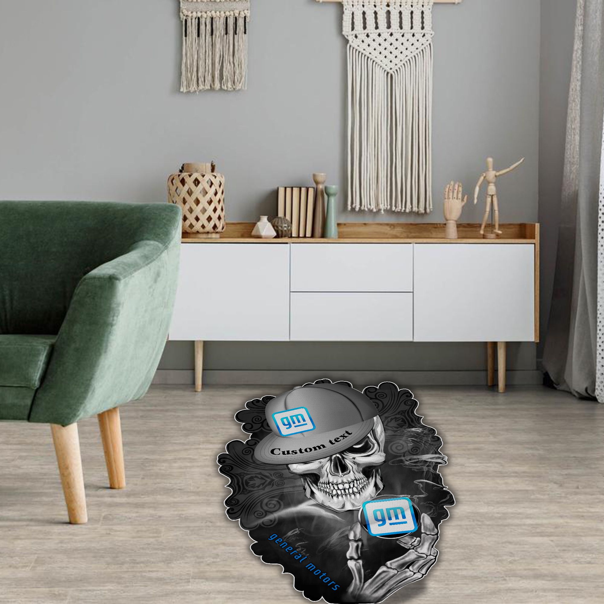 General Motors Skull Shaped Luxurious Doormat, Rug Home Decor, Custom name