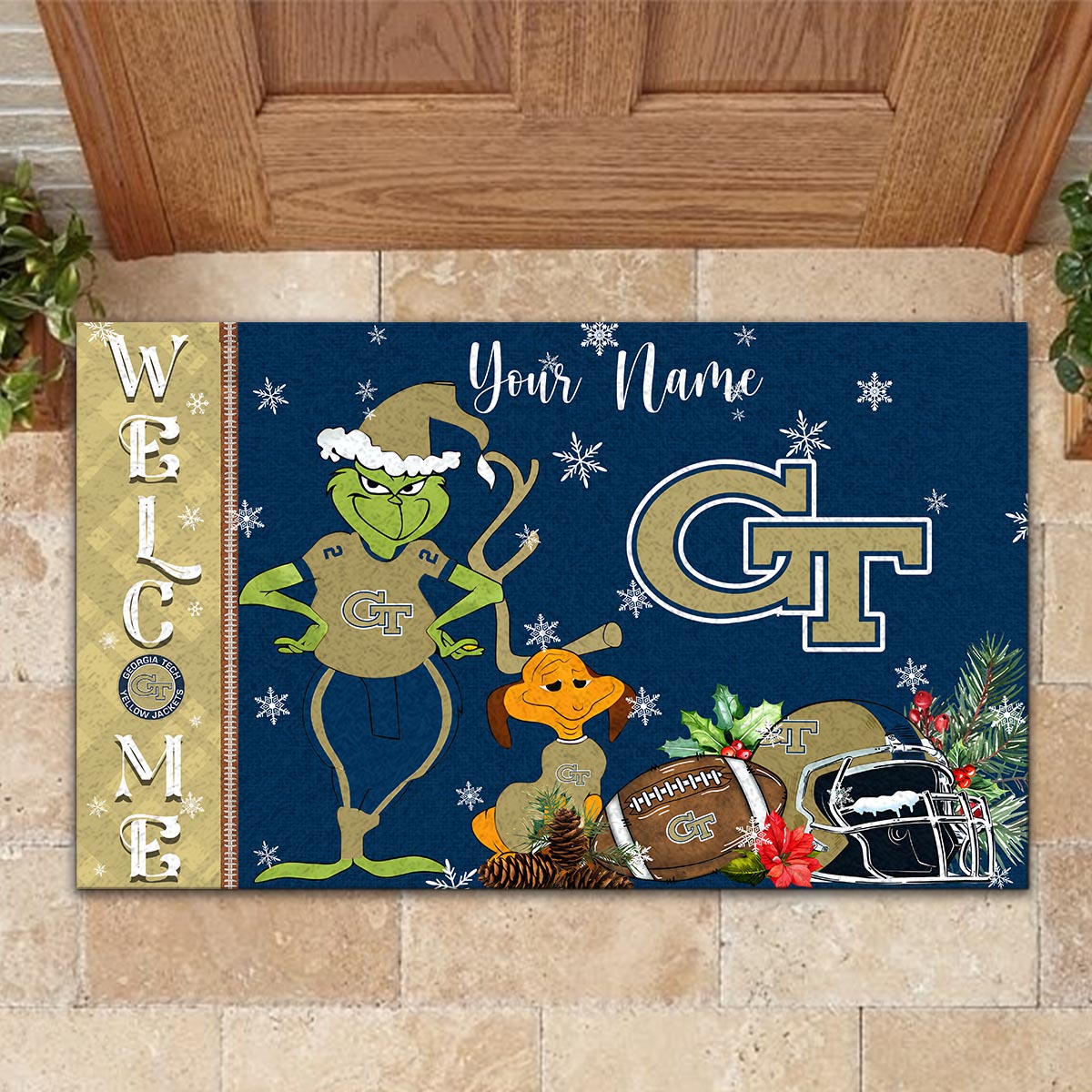 Georgia Tech Yellow Jackets Grinch Christmas Welcome Football Doormat