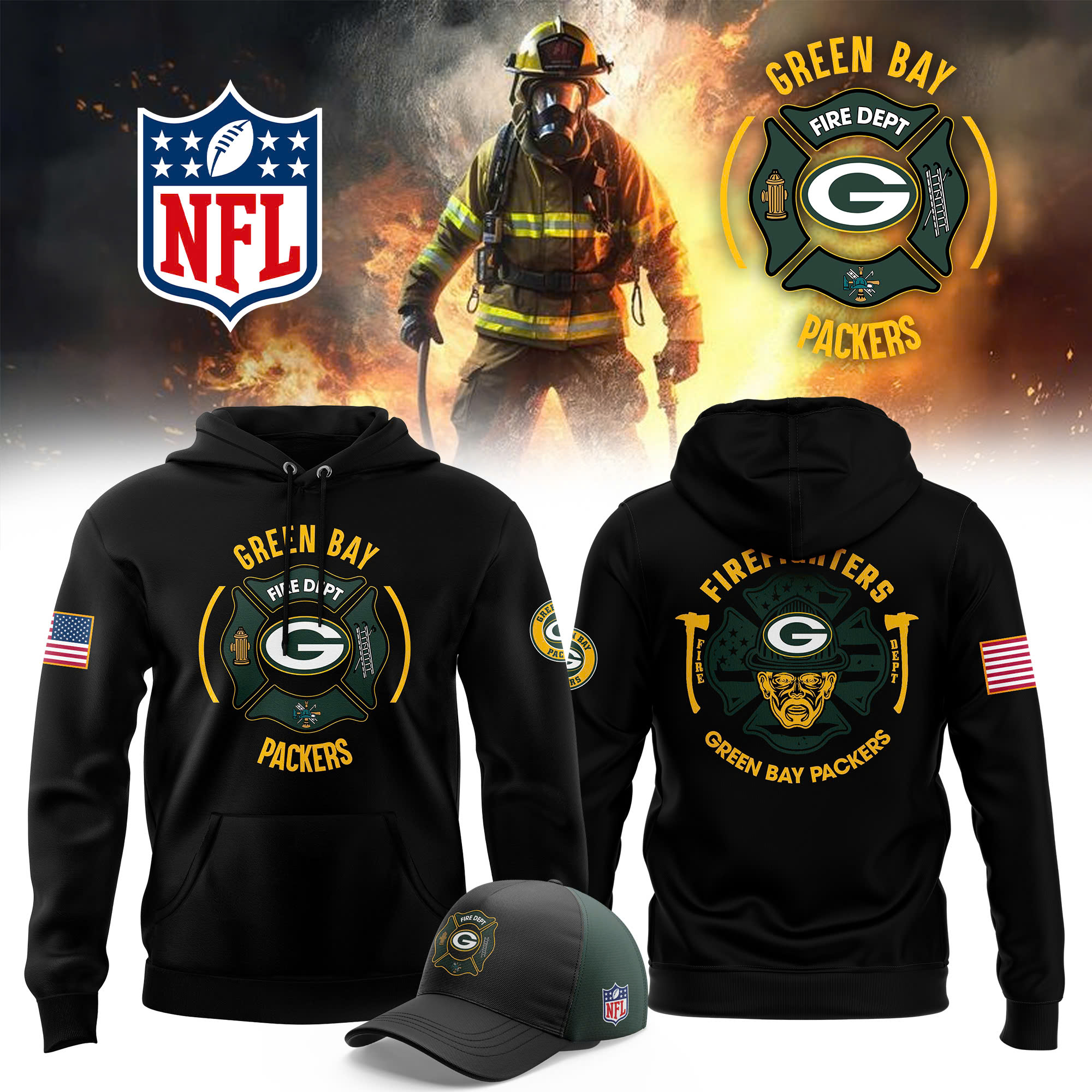 Green Bay Packers-32 Teams Personlized Golden Logo Hoodie Set-SP11012472ID03