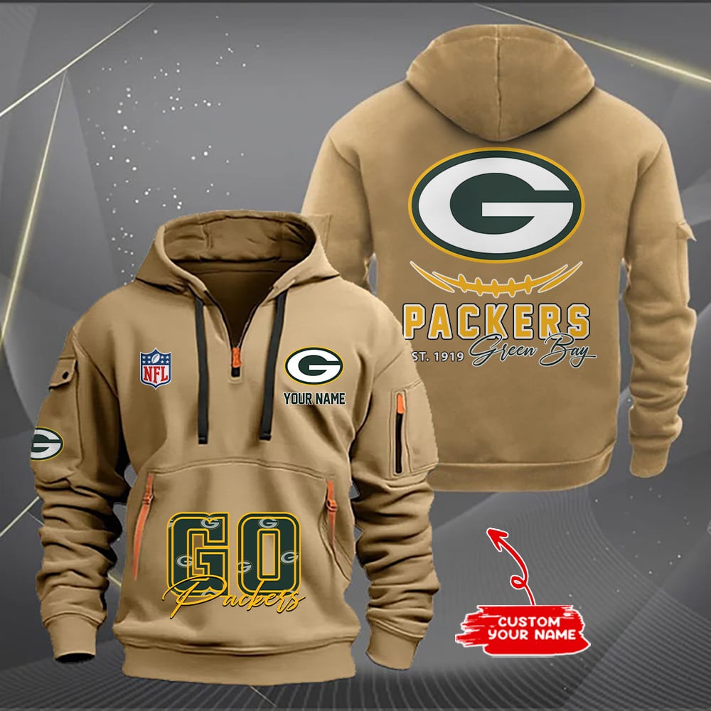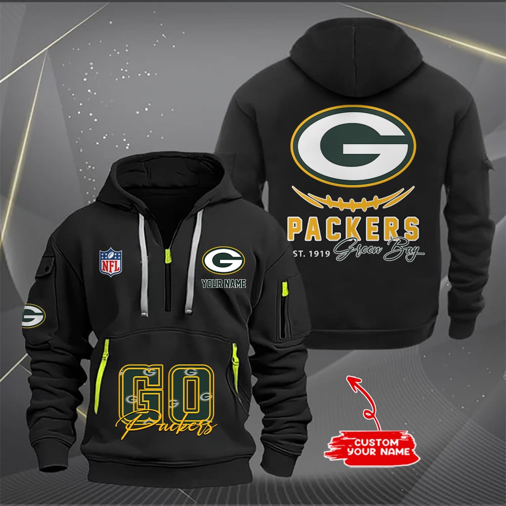 Green Bay Packers New Personalized Quarter Zip Hoodie AZBTQZH000161