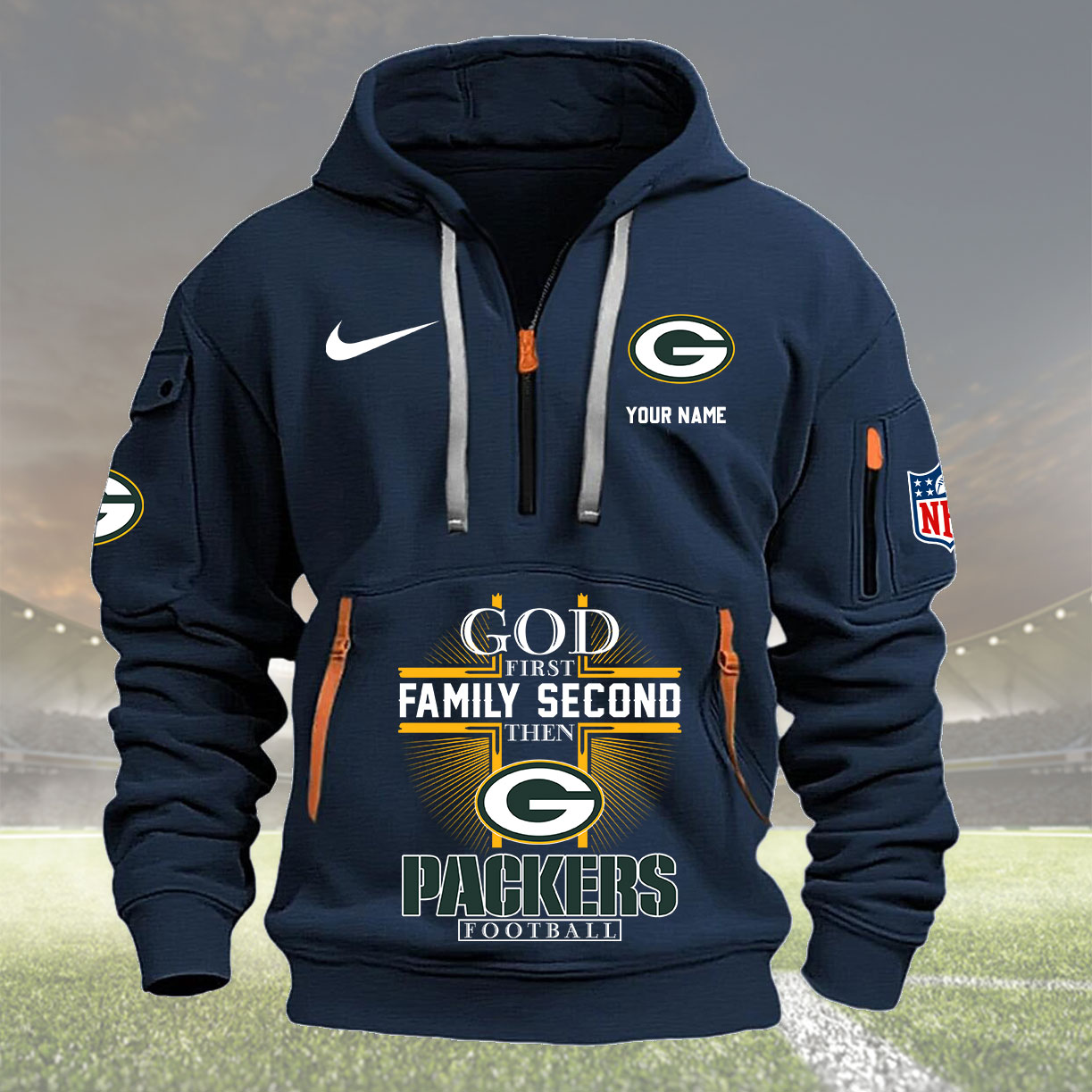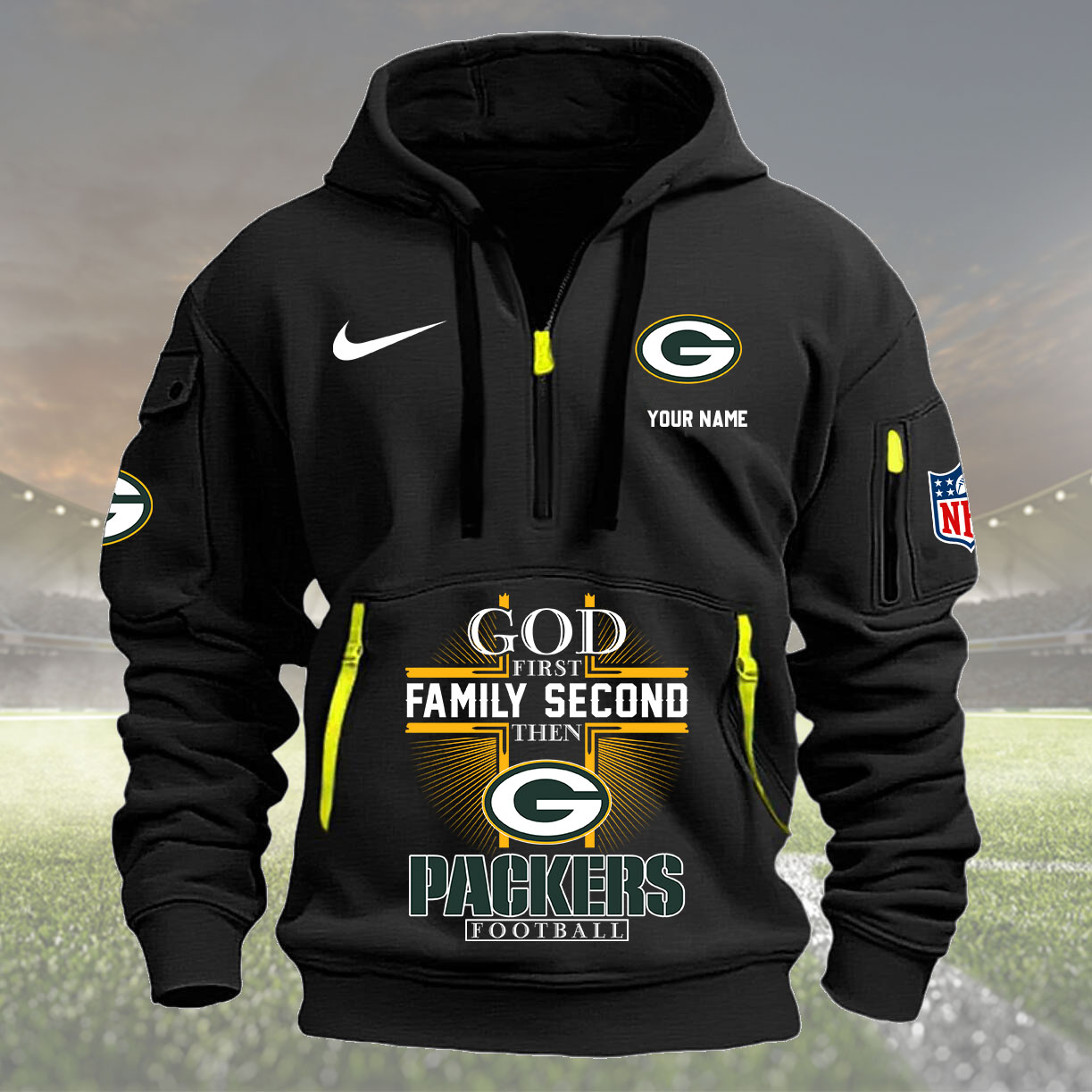 Green Bay Packers Personalized Quarter Zip Hoodie New Collection AZBTQZH000252