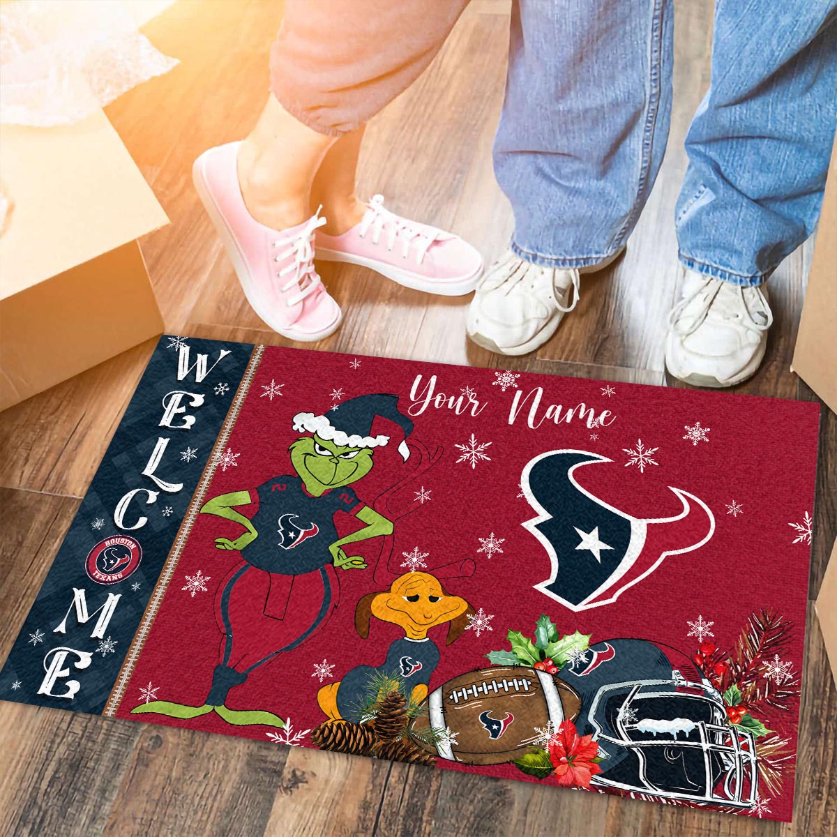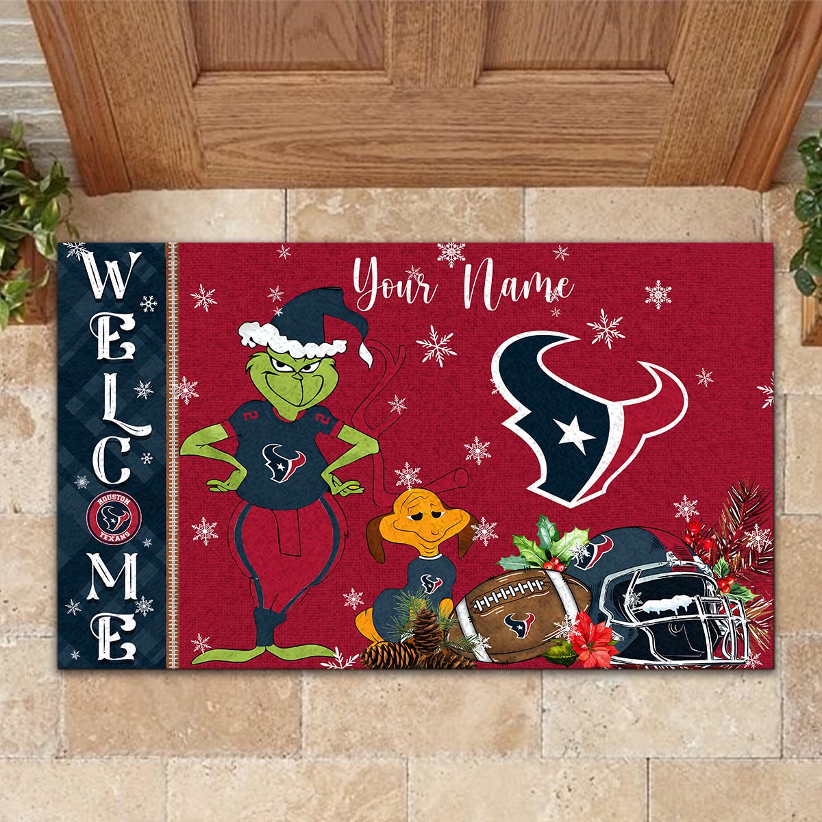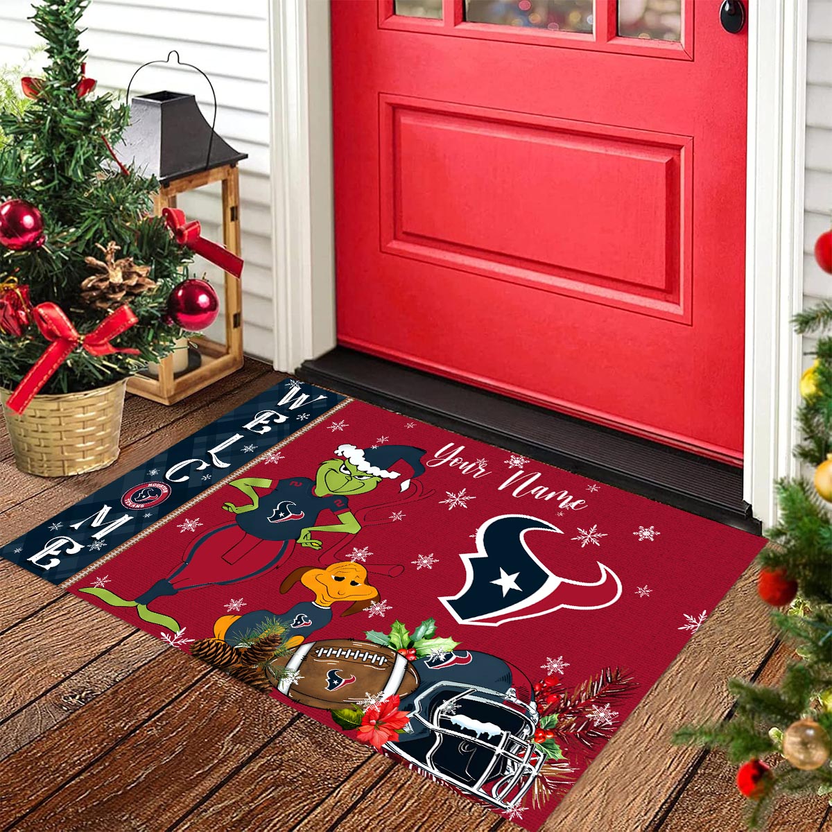 Houston Texans Grinch Christmas Welcome Football Doormat