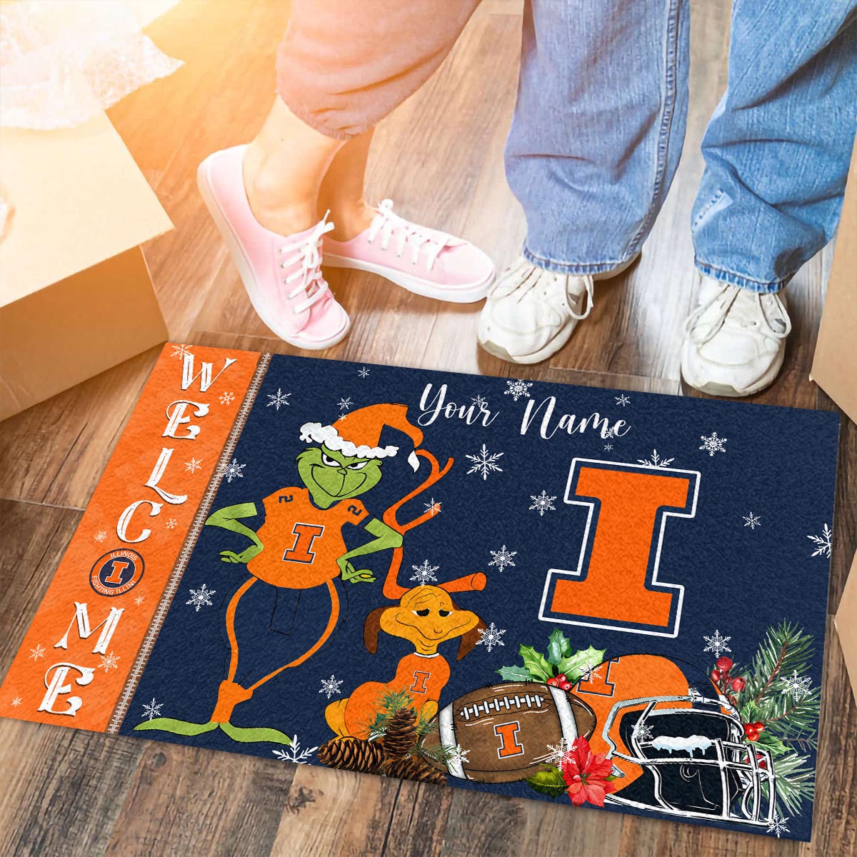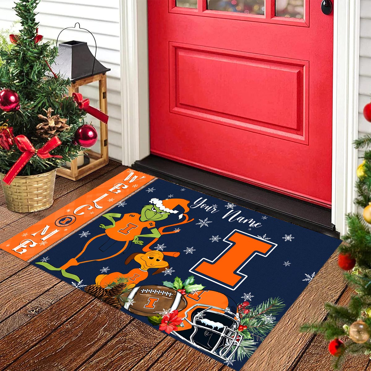 Illinois Fighting Illini Grinch Christmas Welcome Football Doormat