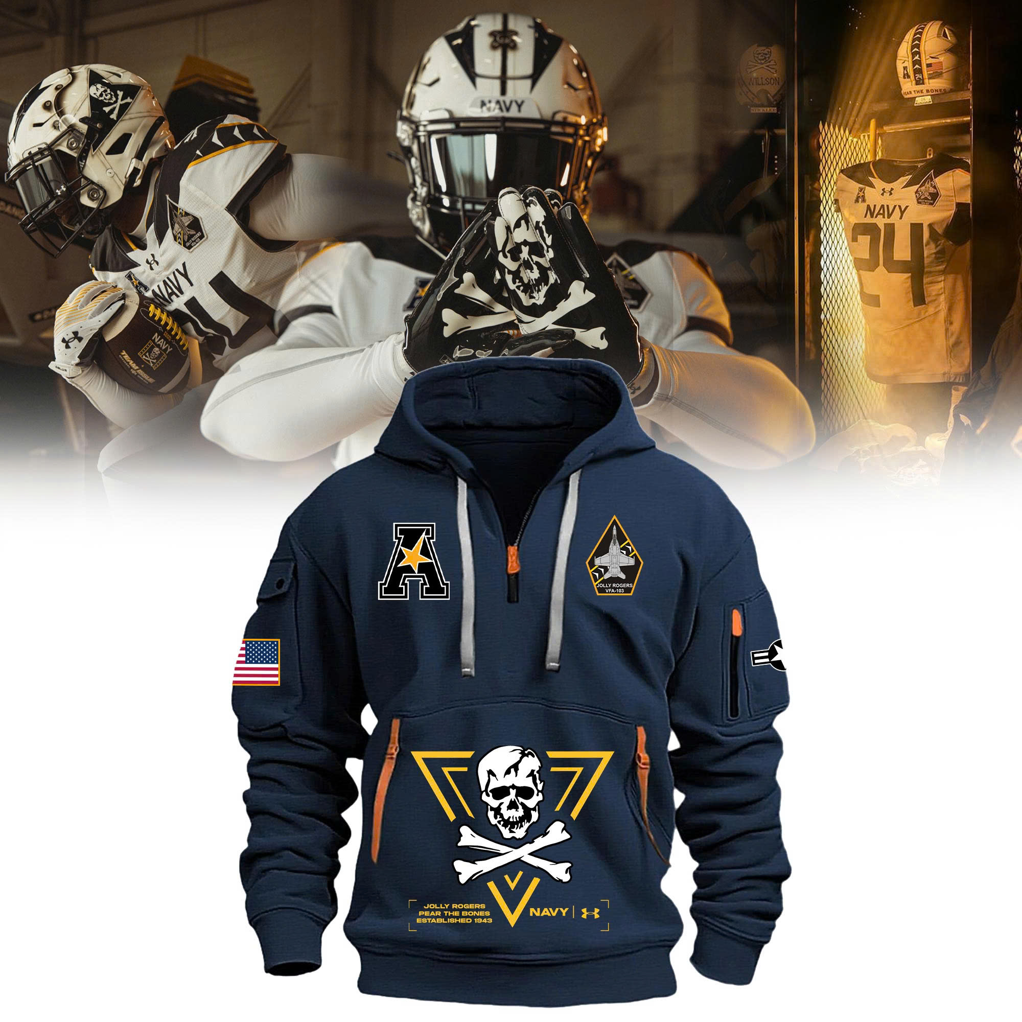 Jolly Rogers Navy Midshipmen football Hoodie v2