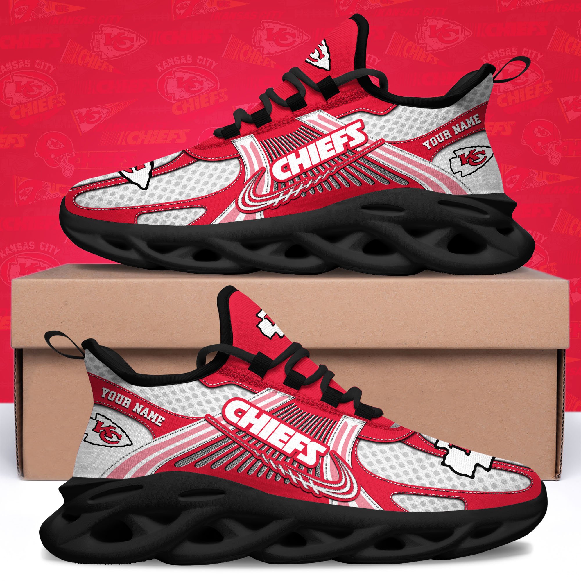 Kansas City Chiefs Clunky Sneakers Custom Your Name, Sport Sneakers For Fans, Gifts For Sport Lovers, Gift For Dad ETRG-62453