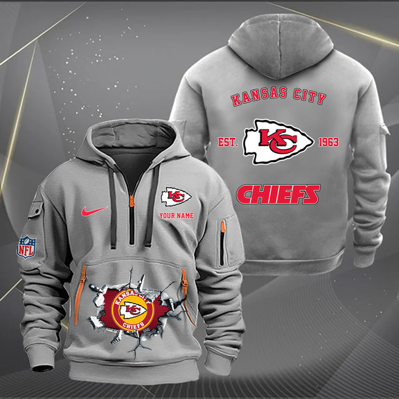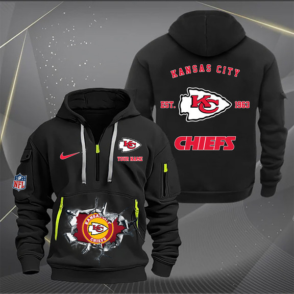 Kansas City Chiefs New Personalized Quarter Zip Hoodie AZBTQZH000131