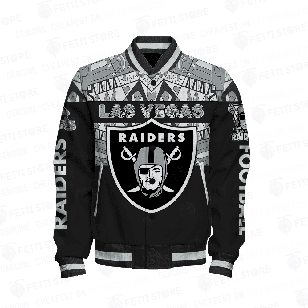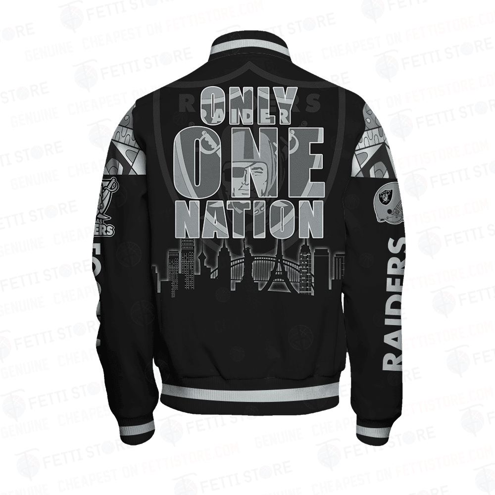 Las Vegas Raiders Only One Nation Print Varsity Jacket