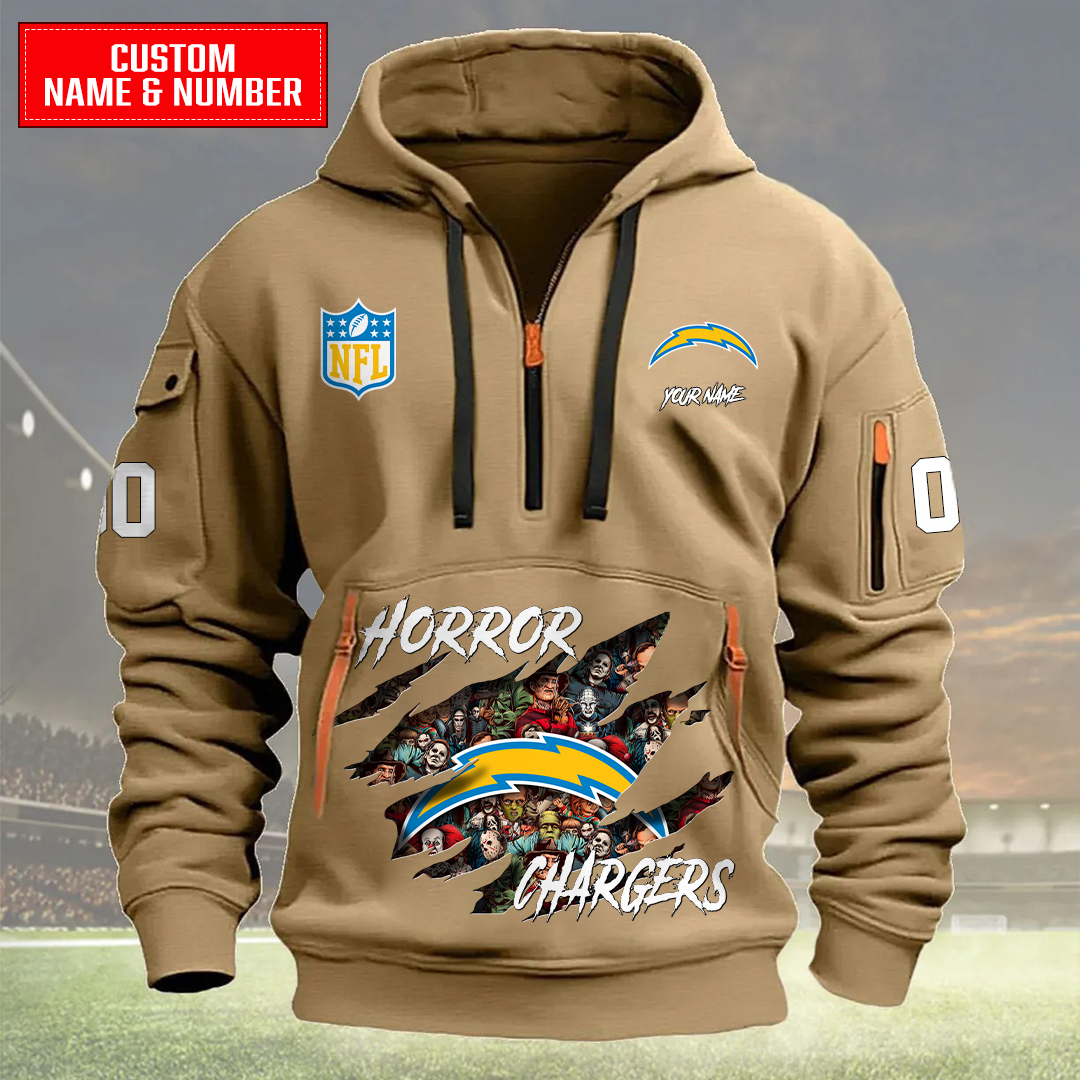 Los Angeles Chargers Halloween Horror Collection Personalize Quarter Zip Hoodie AZCAQZH000027