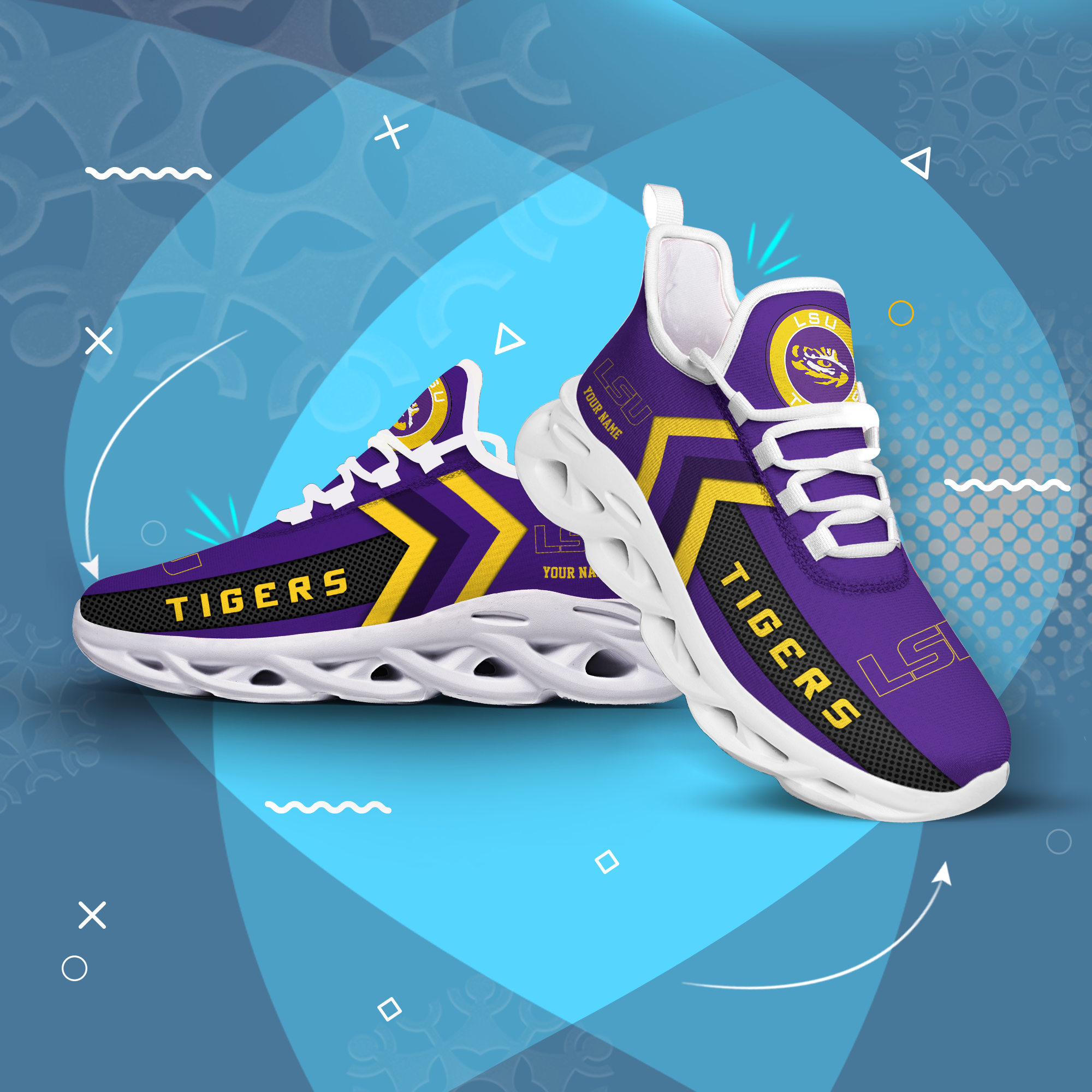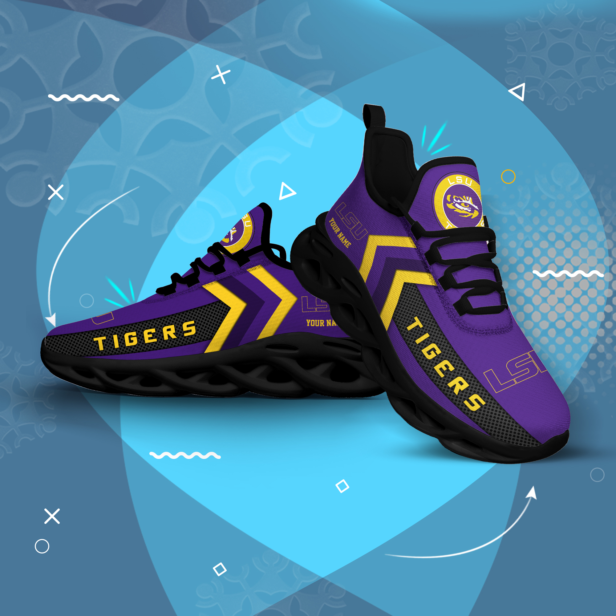 LSU Tigers Personalized Custom Name Max Soul Shoes DS003