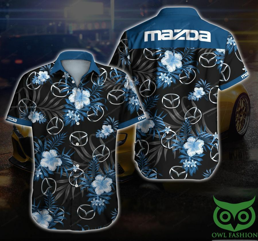 Mazda Car Blue Floral Black Hawaiian Shirt