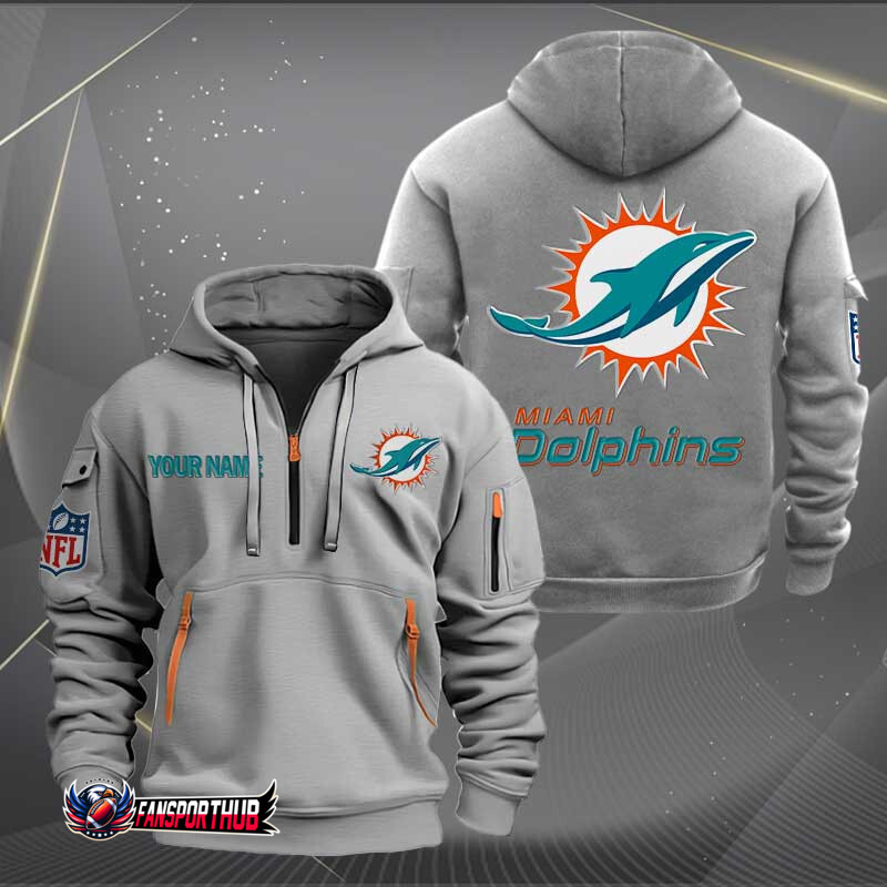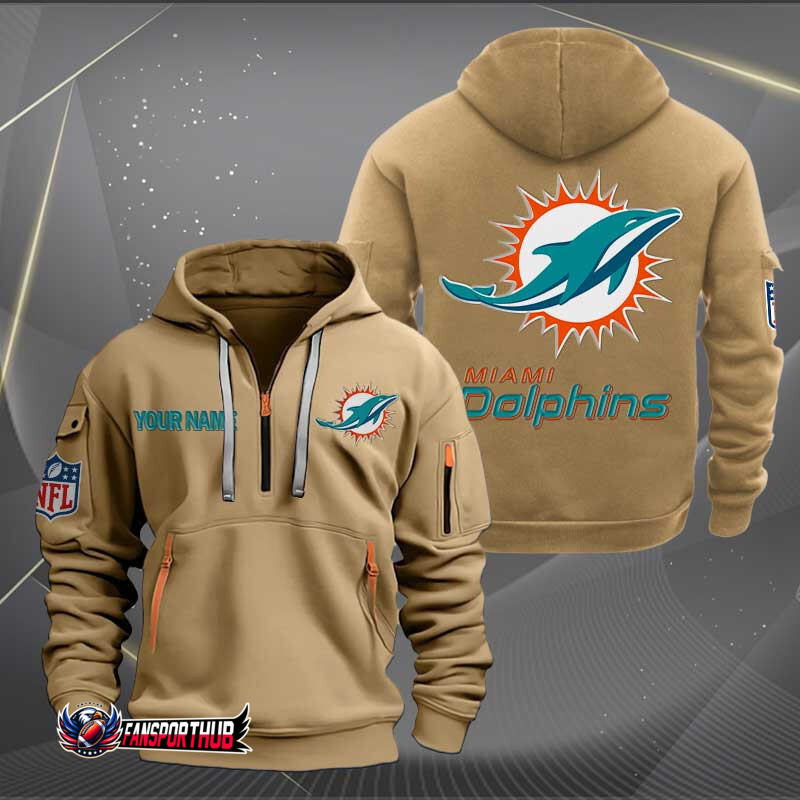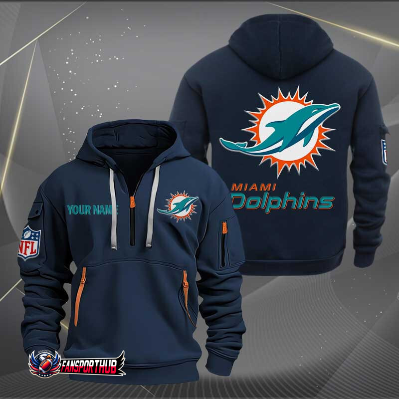 Miami Dolphins New Personalized Quarter Zip Hoodie AZBTQZH000213