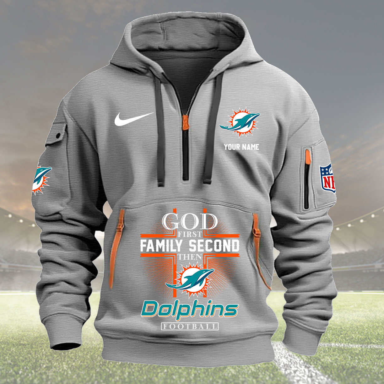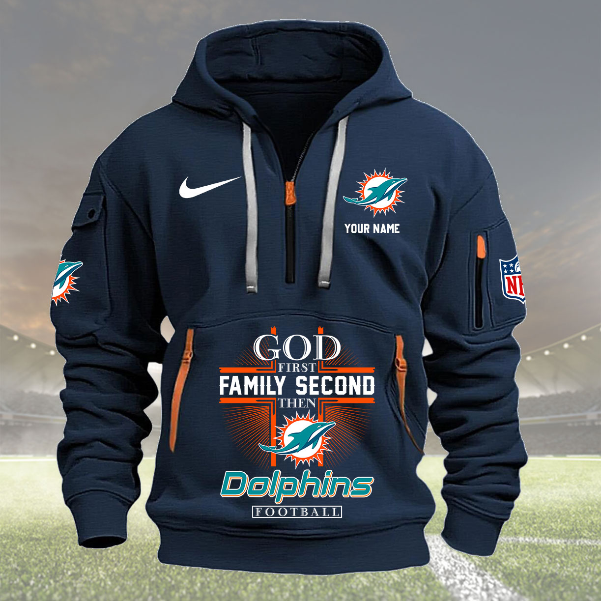 Miami Dolphins Personalized Quarter Zip Hoodie New Collection AZBTQZH000257