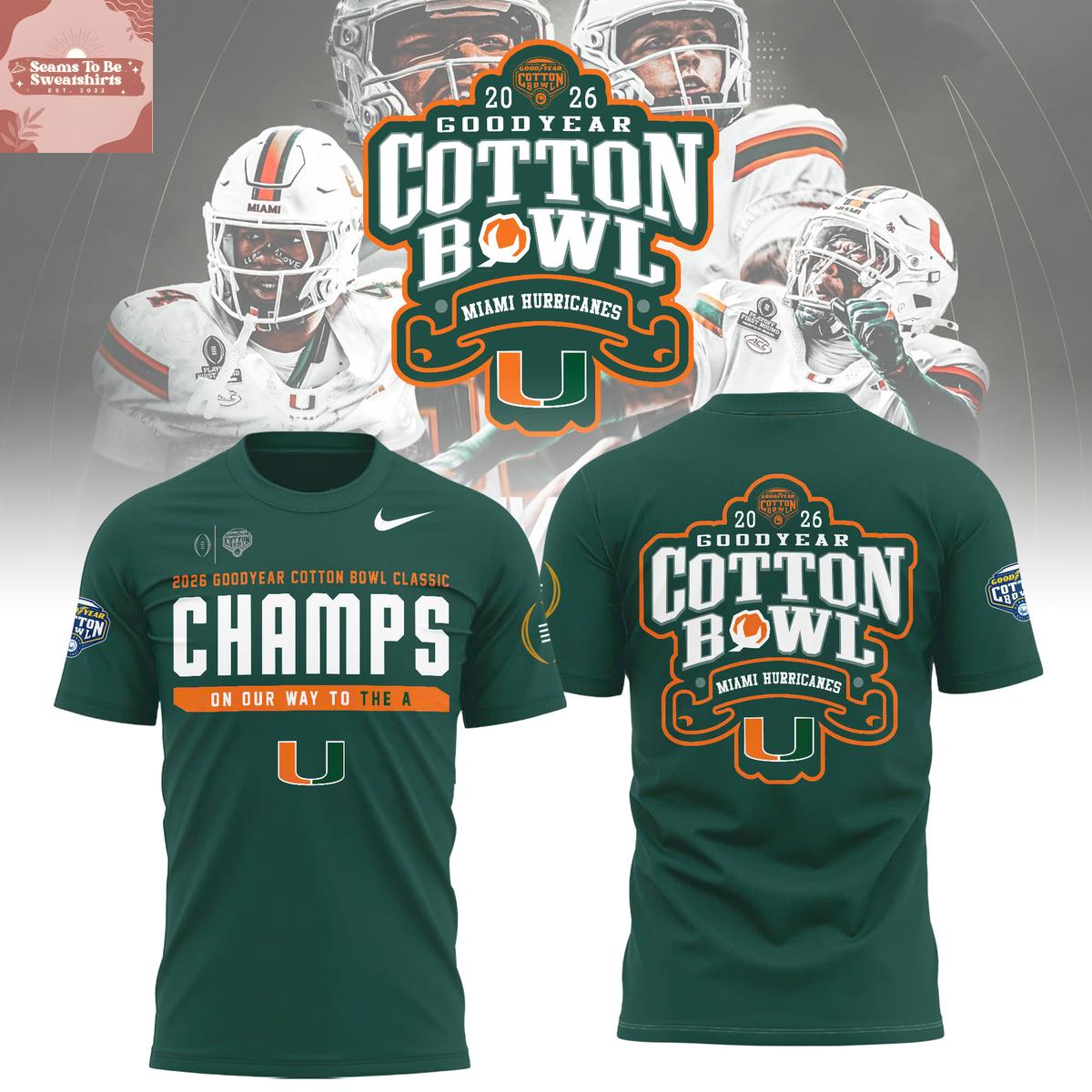 Miami Hurricanes 2026 Goodyear Cotton Bowl Champions Hoodie T-Shirt