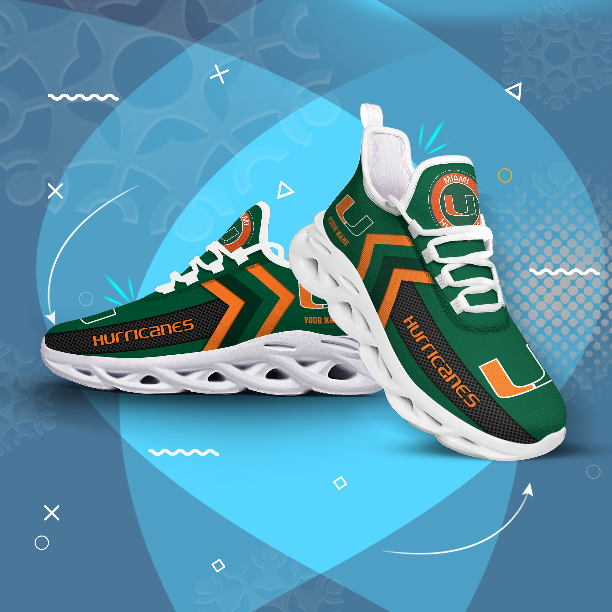 Miami Hurricanes Personalized Custom Name Max Soul Shoes DS003