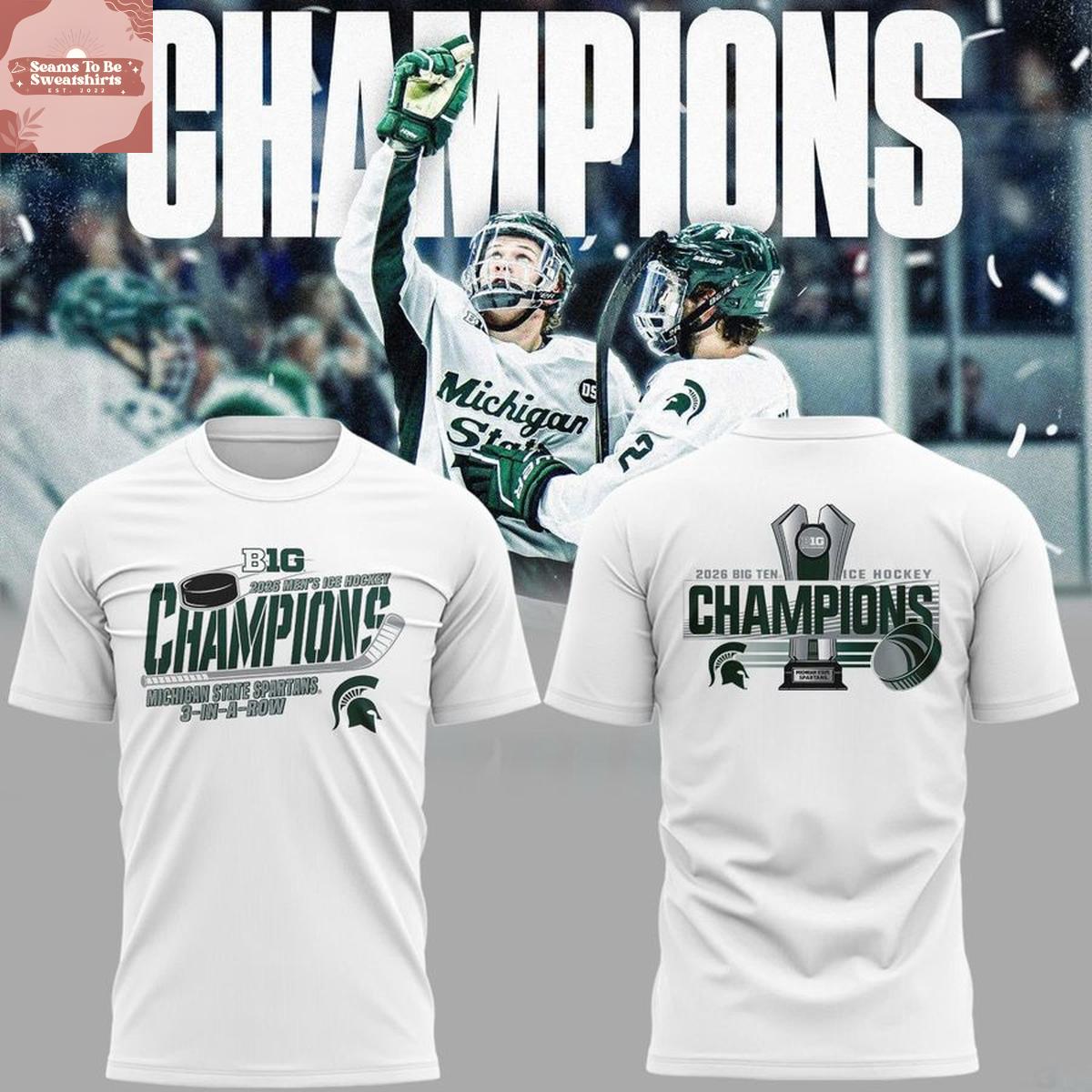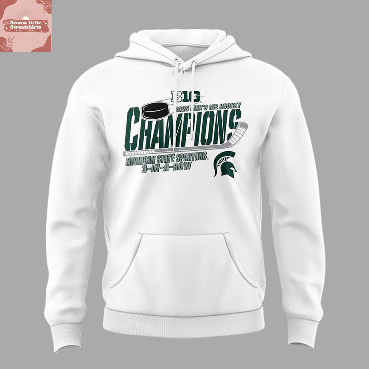 Michigan State Spartans Big Ten Ice Hockey Champions 3 In A Row 2026 Hoodie T-Shirt