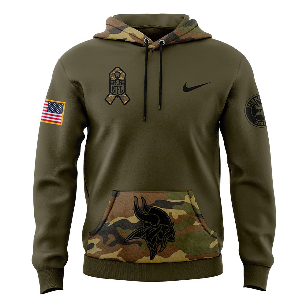 Minnesota Vikings Camo Salute to Service Club Fleece Pullover Hoodie V3