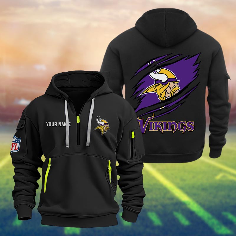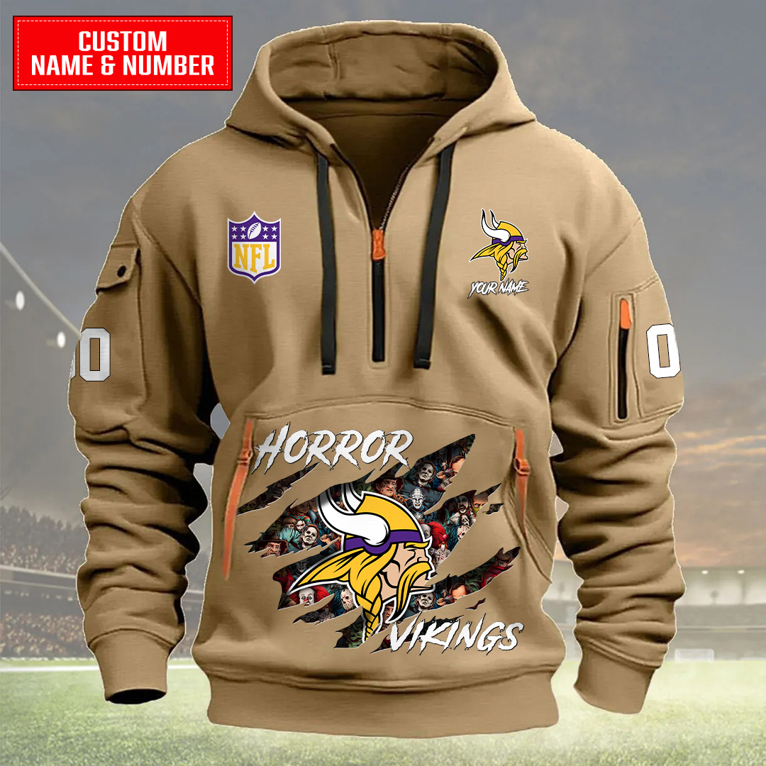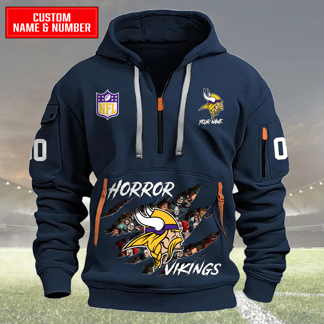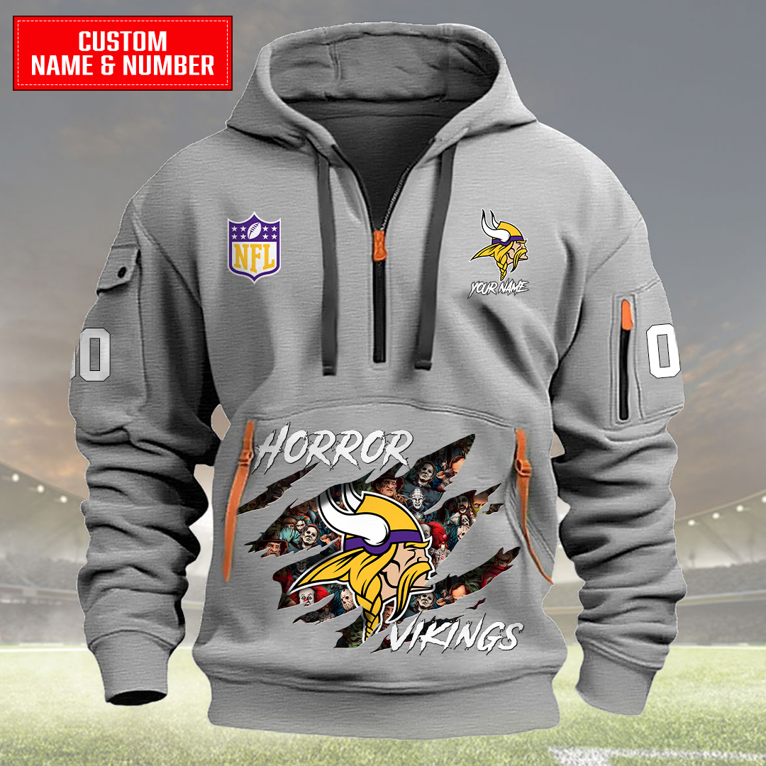 Minnesota Vikings Halloween Horror Collection Personalize Quarter Zip Hoodie AZCAQZH000009