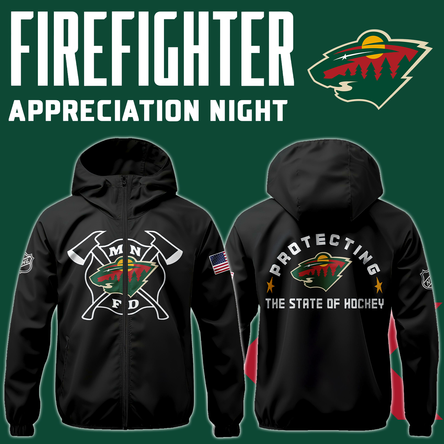 Minnesota Wild x Firefighter Appreciation Night Premium Pullover Zip Hoodie