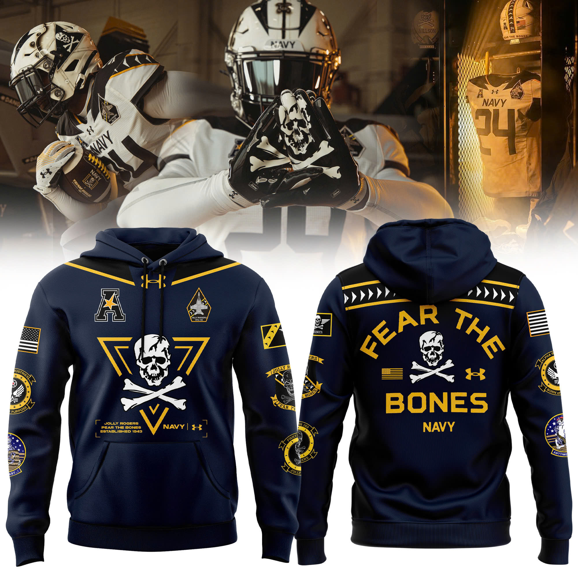 Navy Midshipmen football Jolly Rogers Hoodie