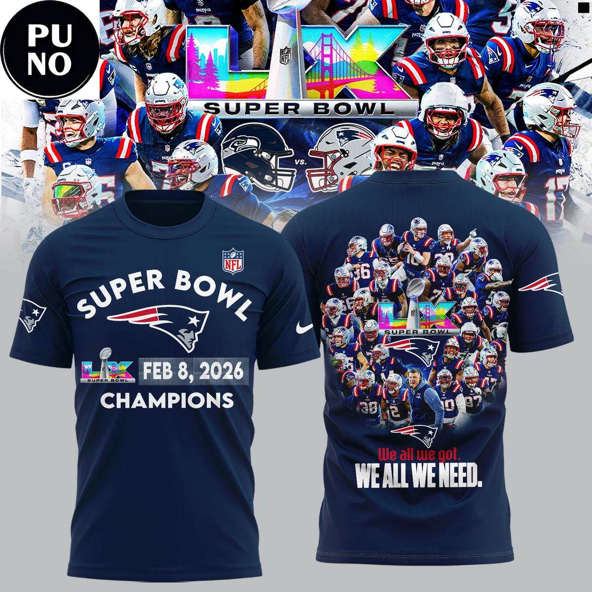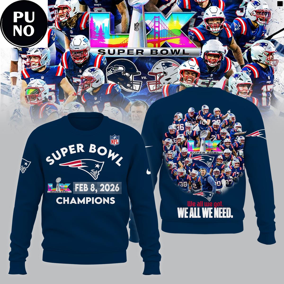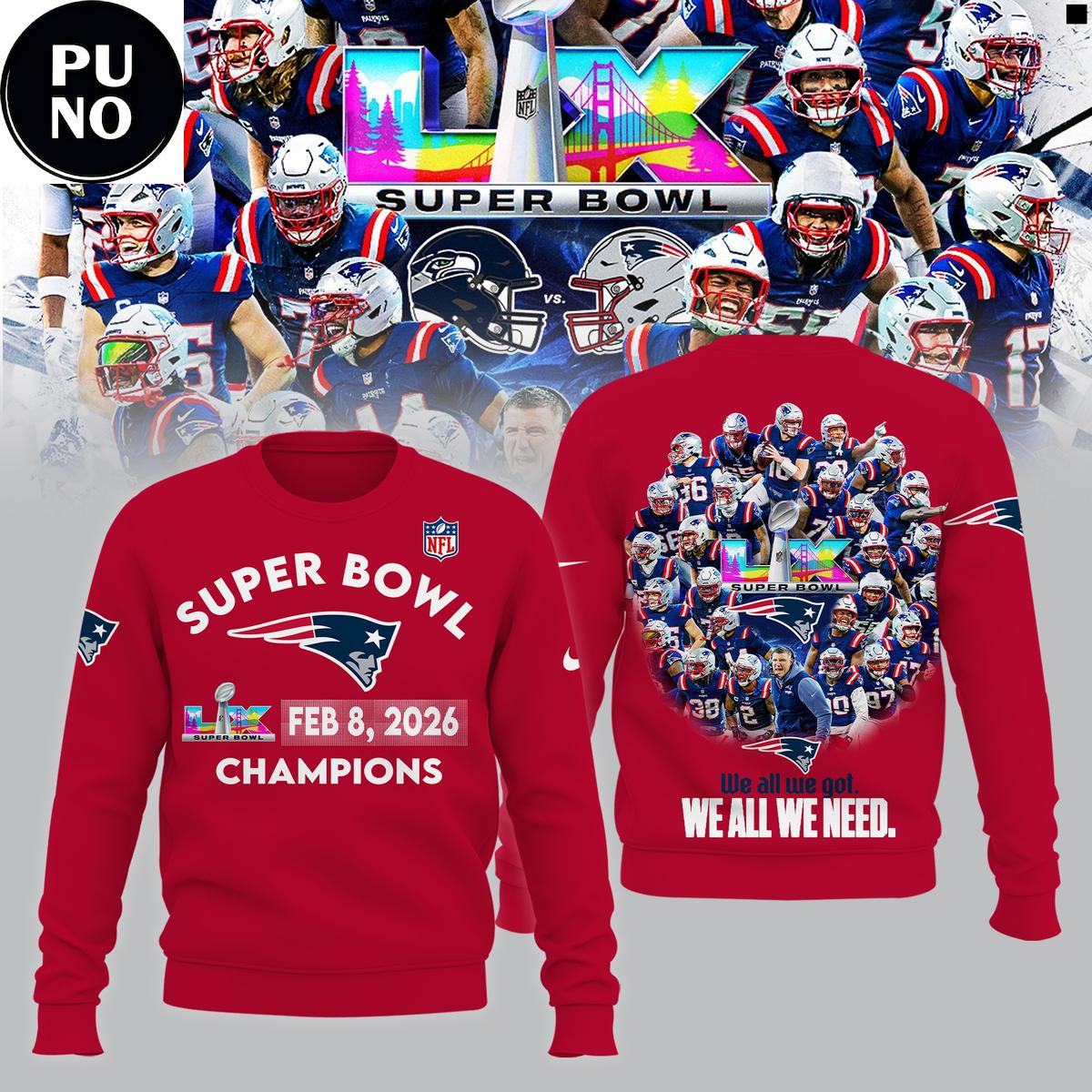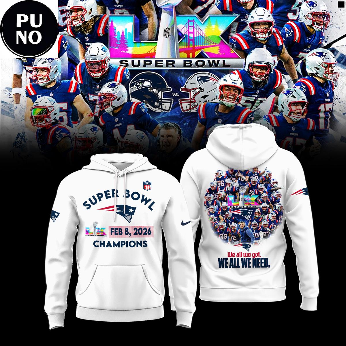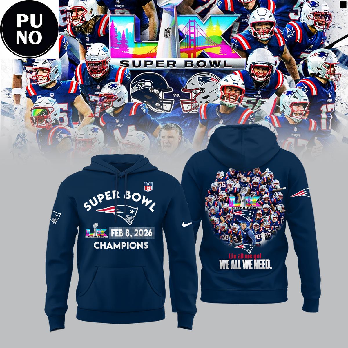 New England Patriots Super Bowl LX Champions 2026 Hoodie T-Shirt