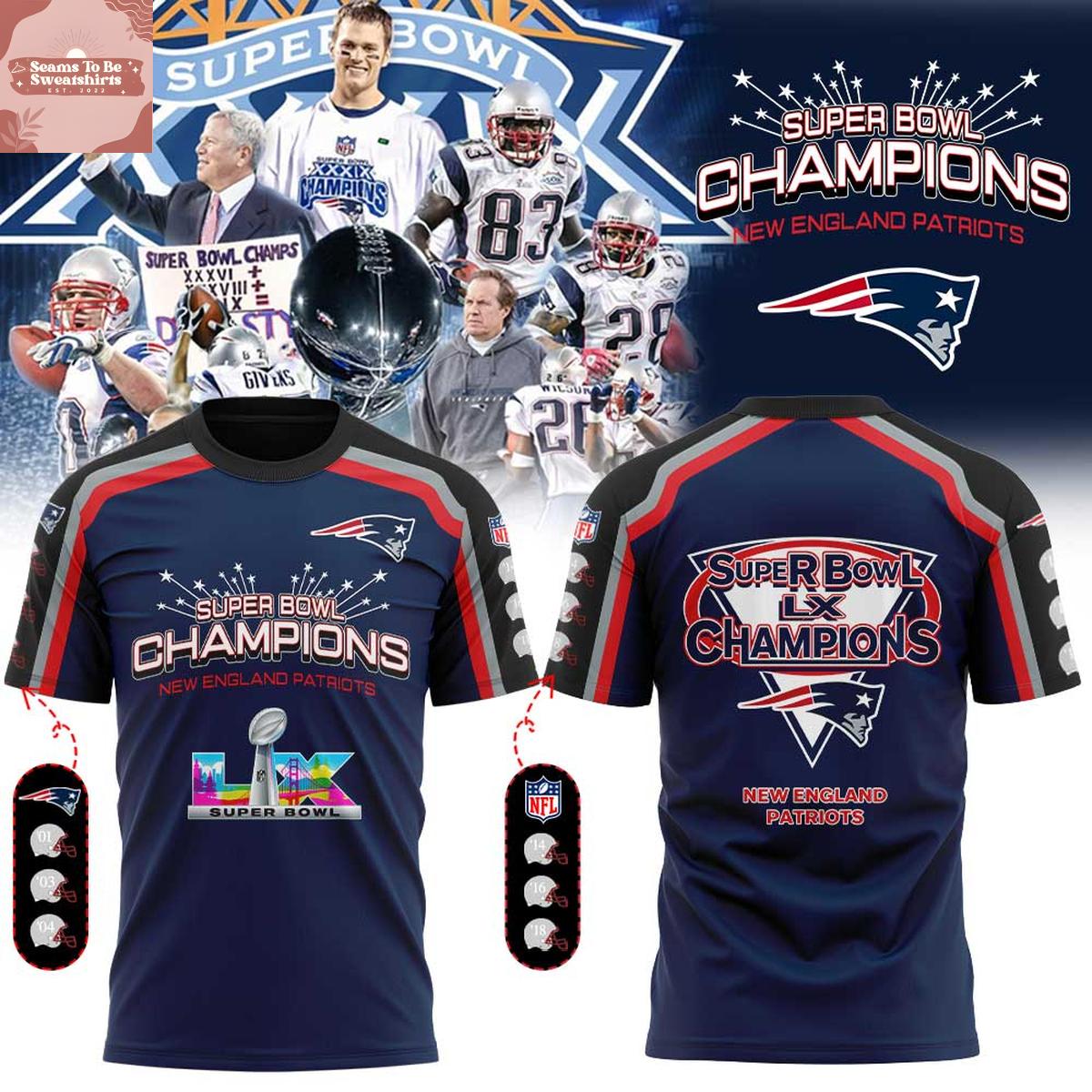 New England Patriots Super Bowl LX Champions Hoodie T-Shirt