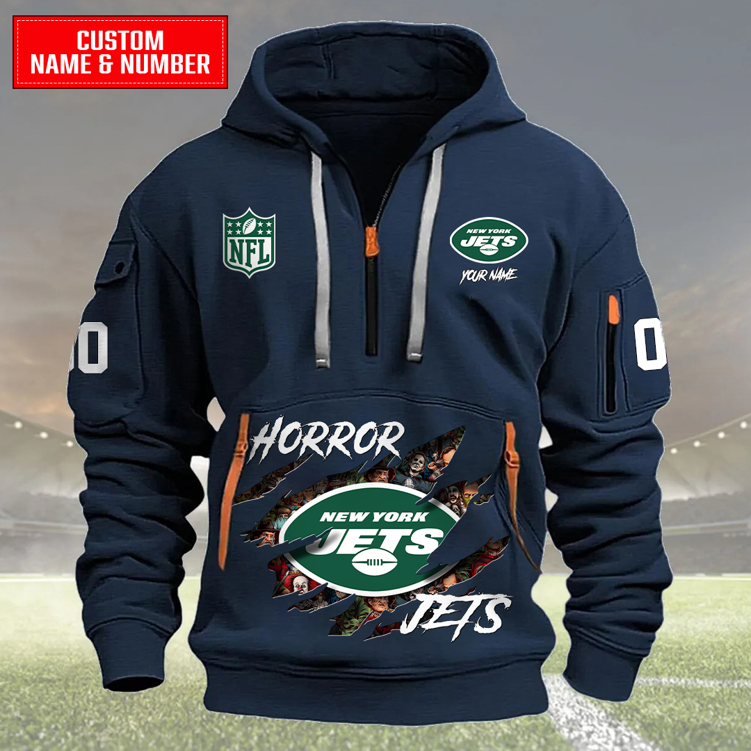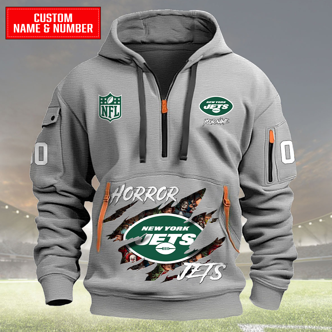 New York Jets Halloween Horror Collection Personalize Quarter Zip Hoodie AZCAQZH000030