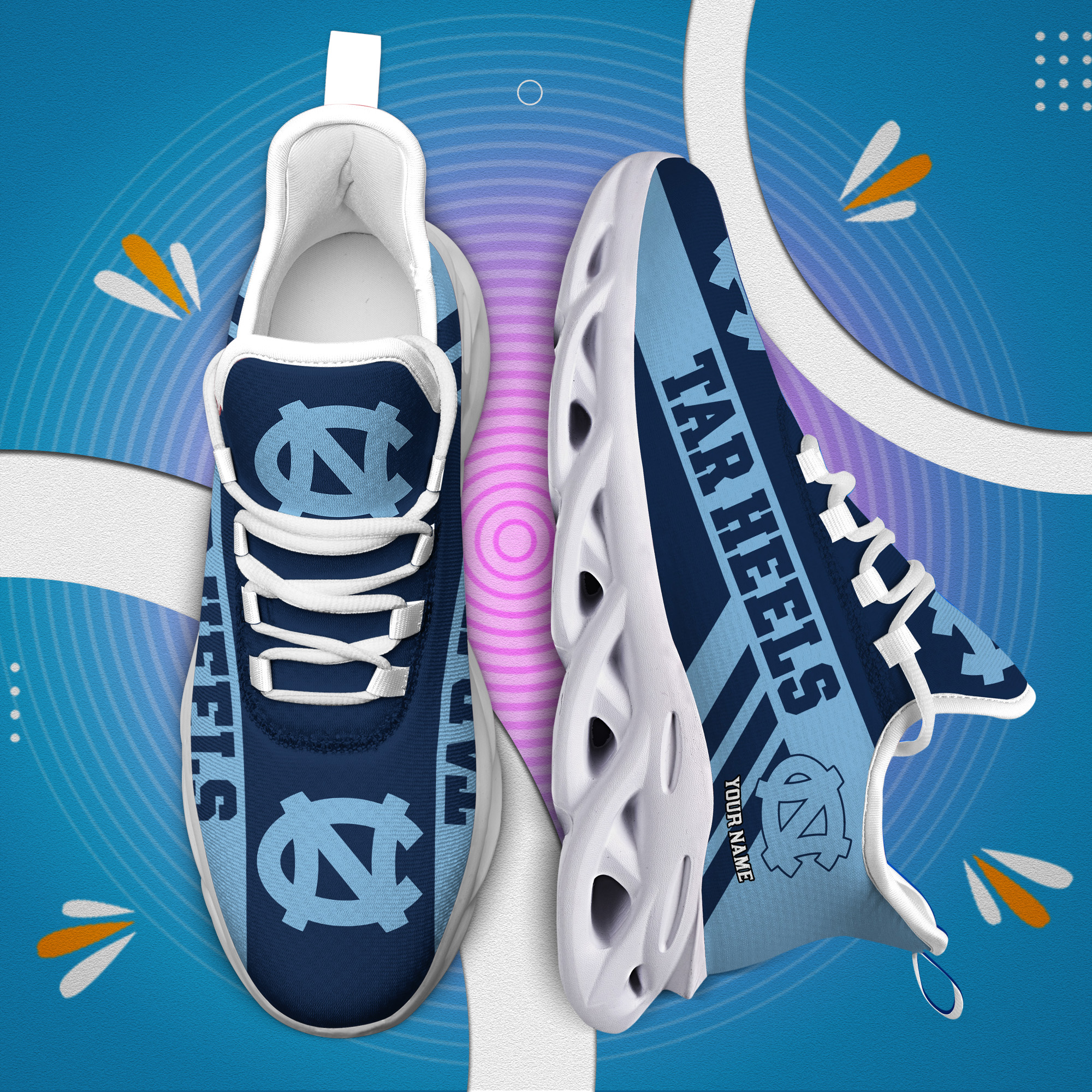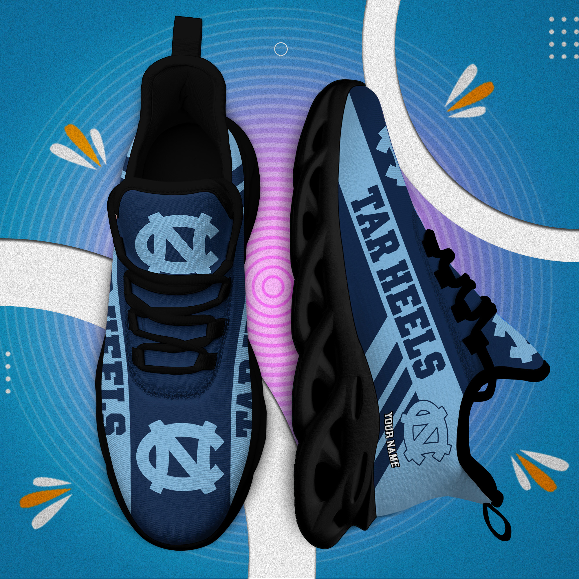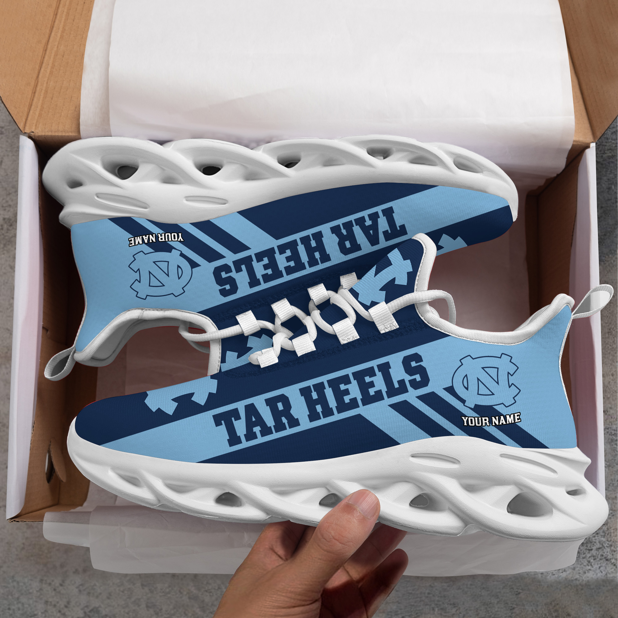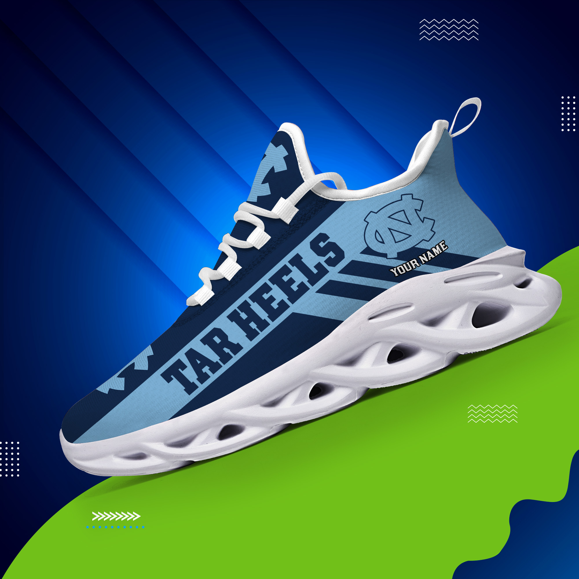 North Carolina Tar Heels Custom Name PERSONALIZED MAX SOUL SHOES DS004