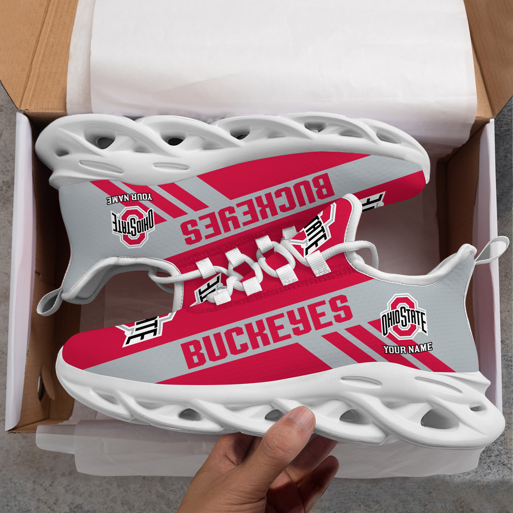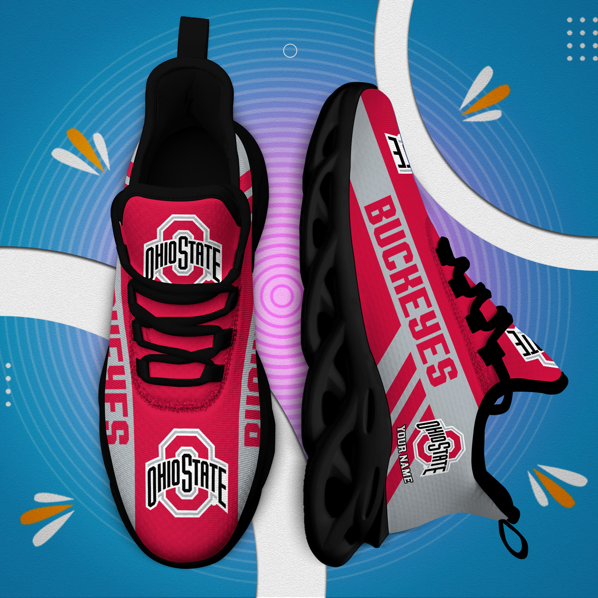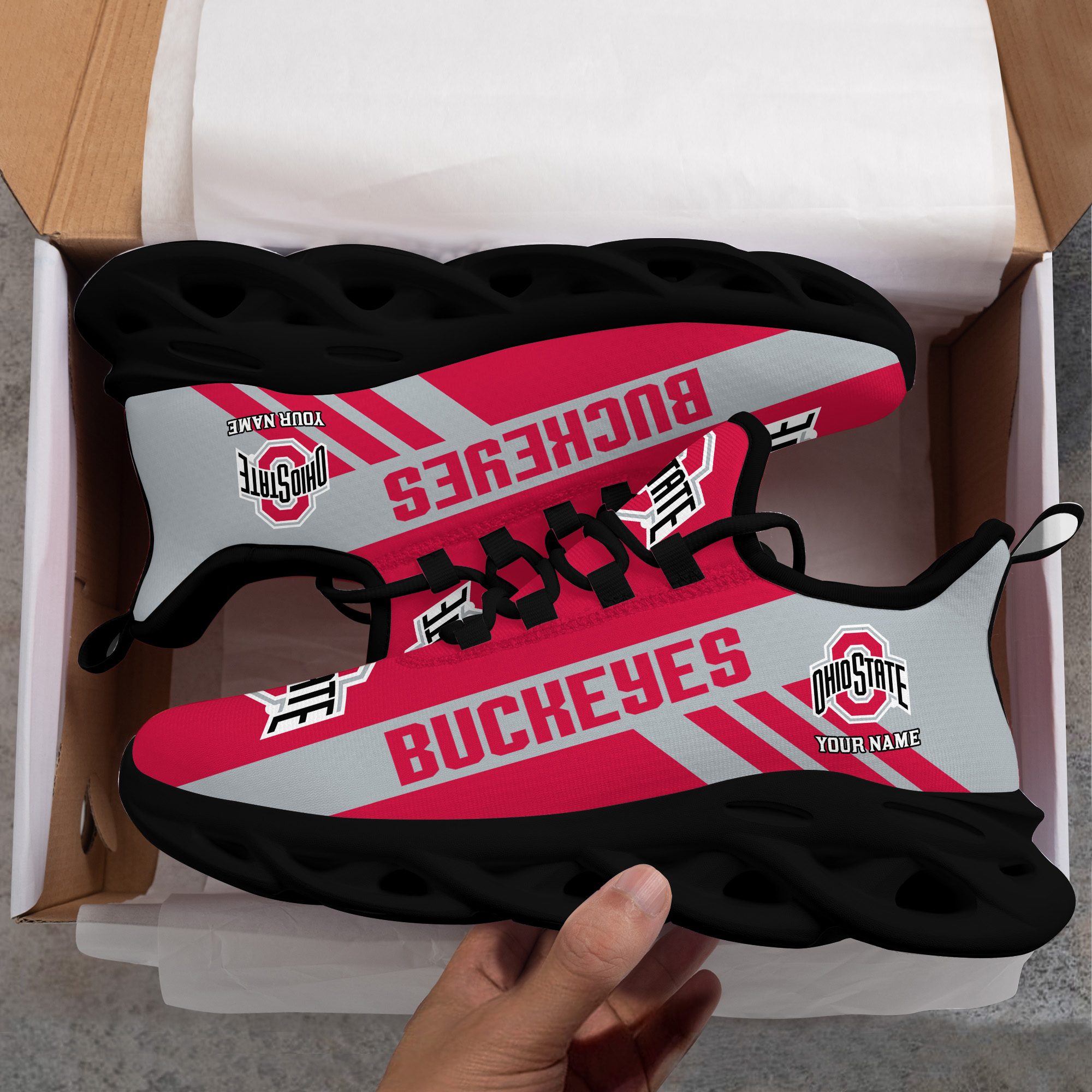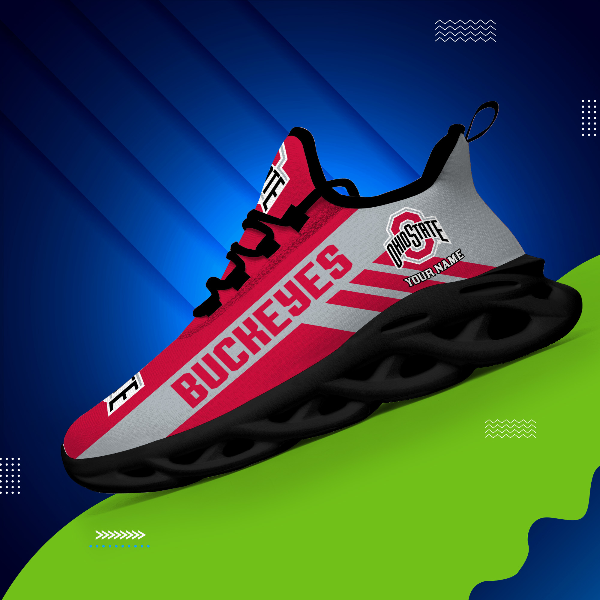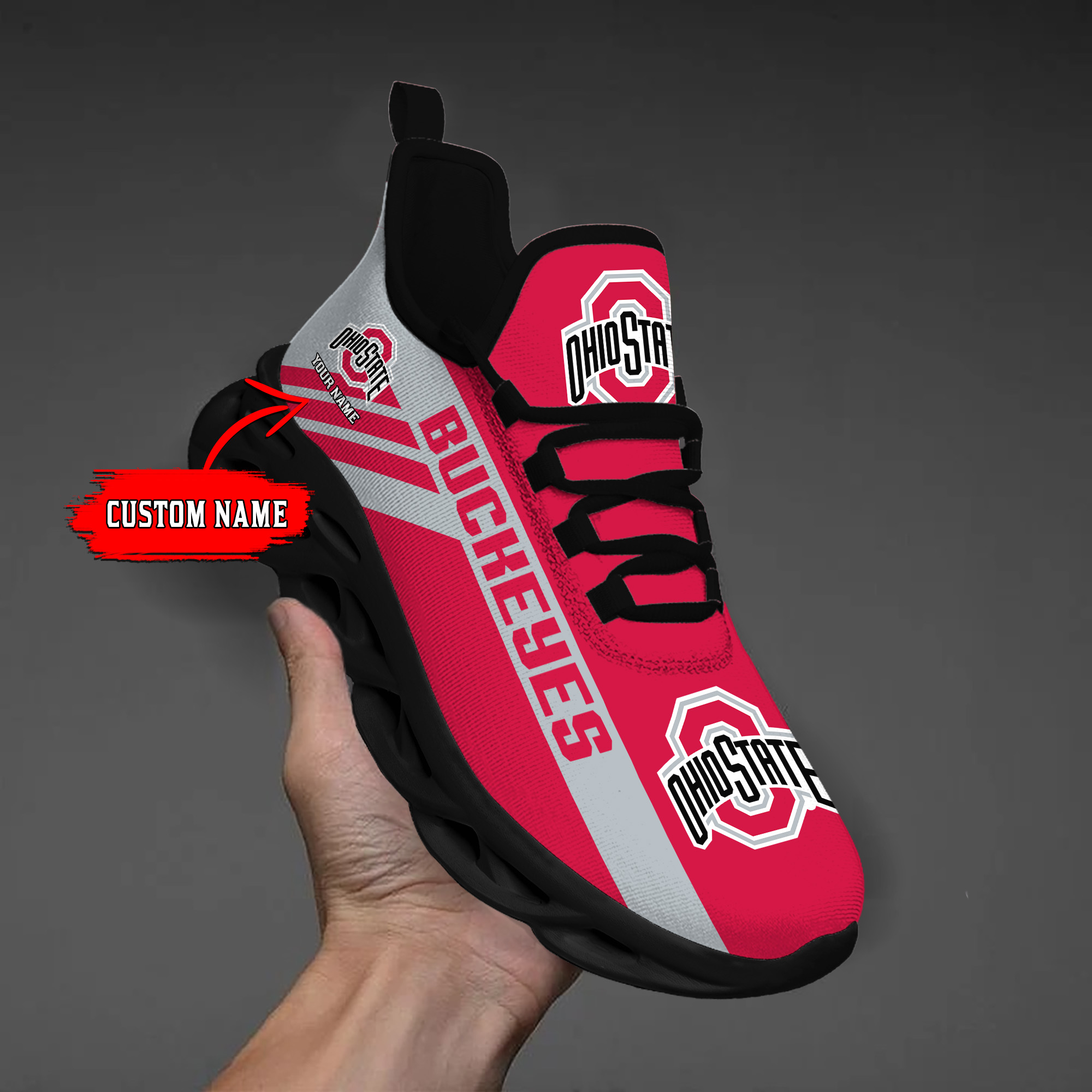 Ohio State Buckeyes Custom Name PERSONALIZED MAX SOUL SHOES DS004