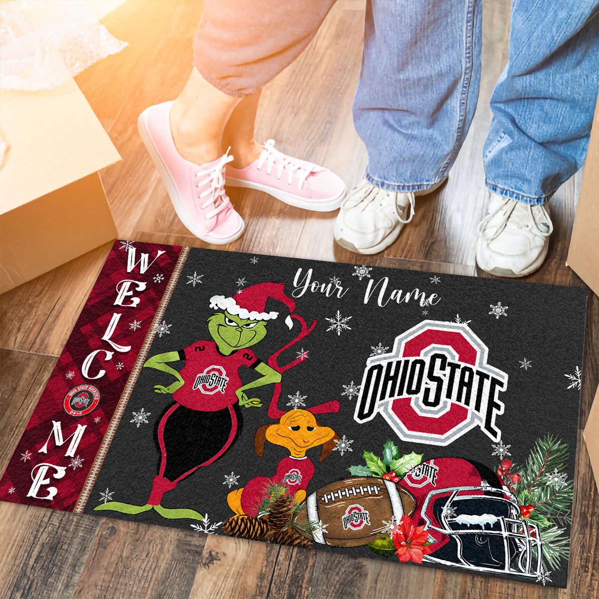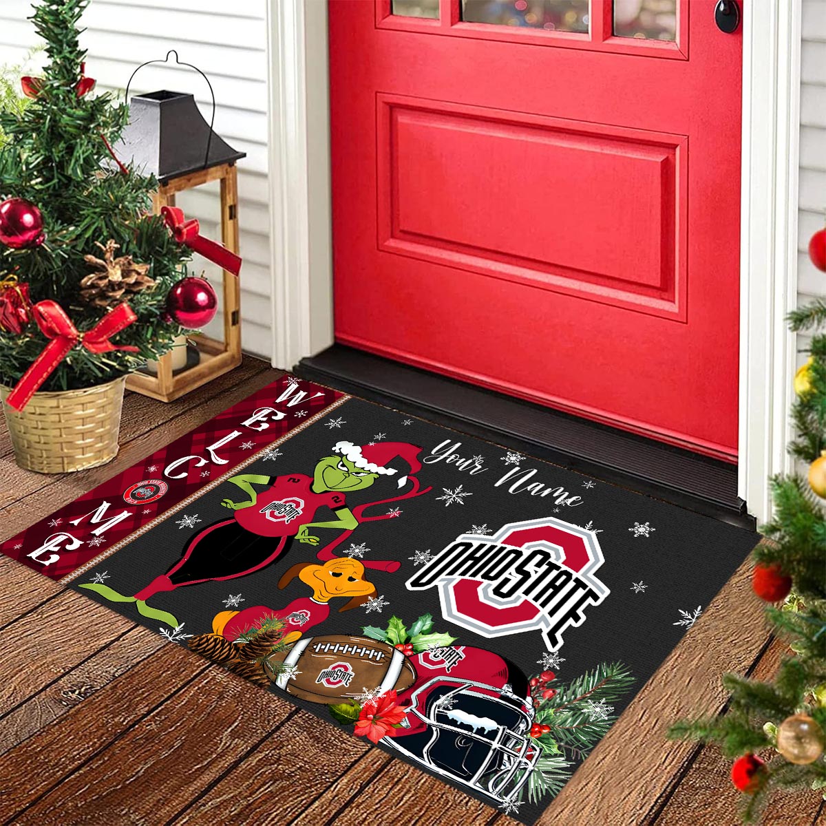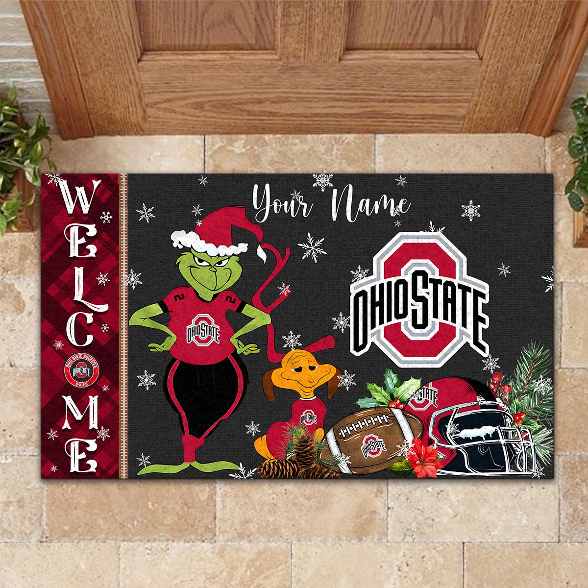 Ohio State Buckeyes Grinch Christmas Welcome Football Doormat