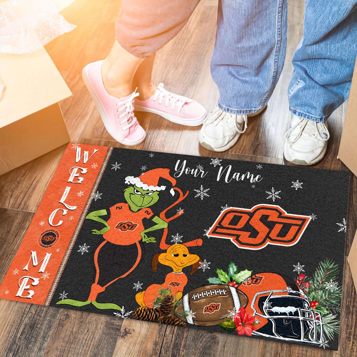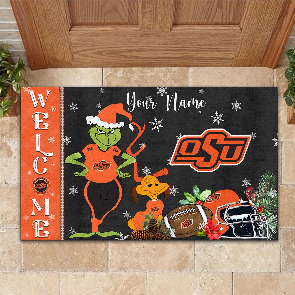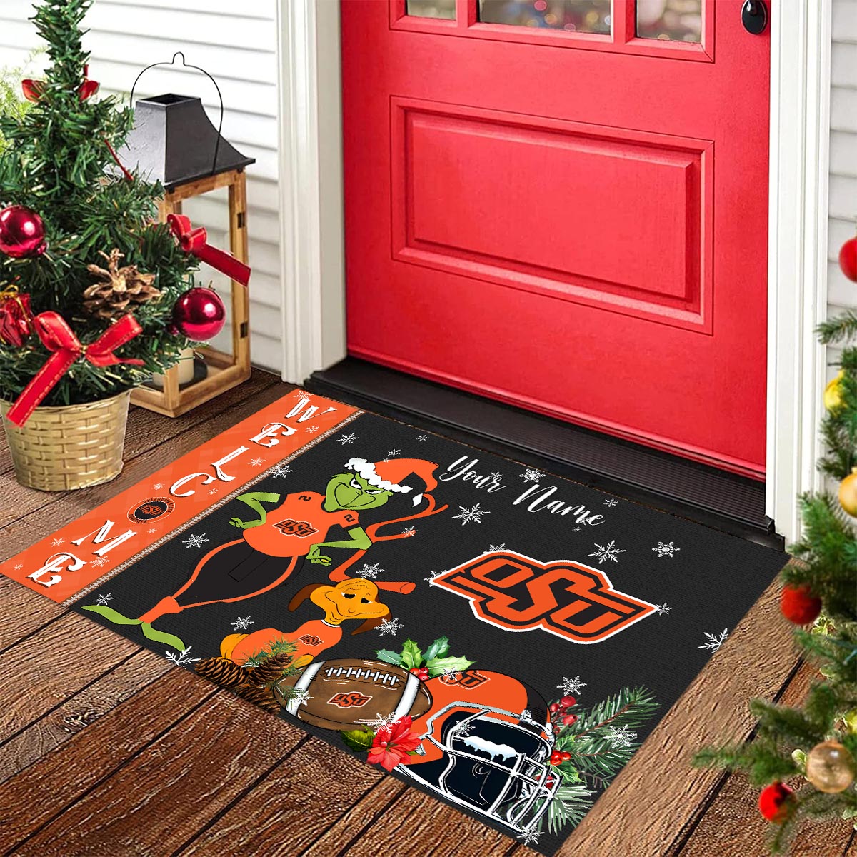 Oklahoma State Cowboys Grinch Christmas Welcome Football Doormat
