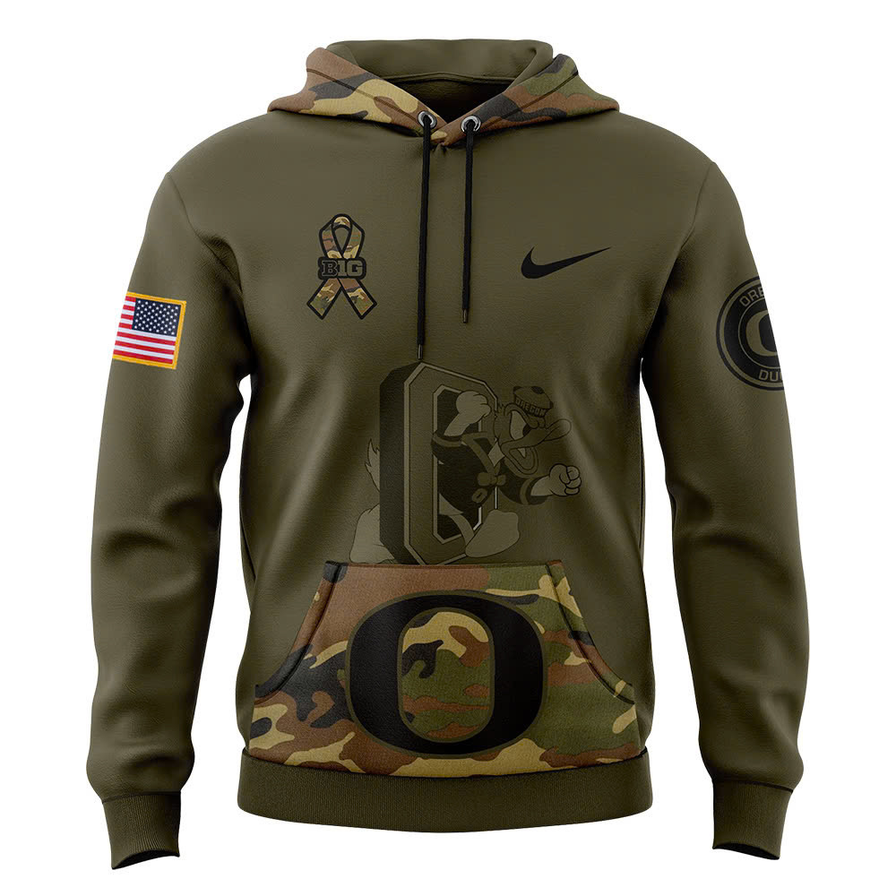 Oregon Ducks Football Camo Salute to Service Club Fleece Pullover Hoodie