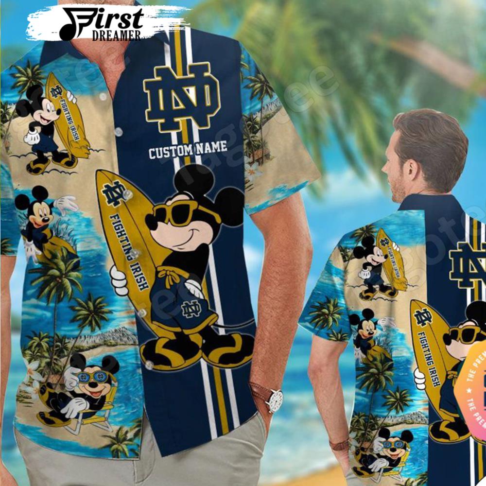 Personalized Notre Dame Fighting Irish Parrot Floral Tropical Aloha Hawaiian Shirt Beach