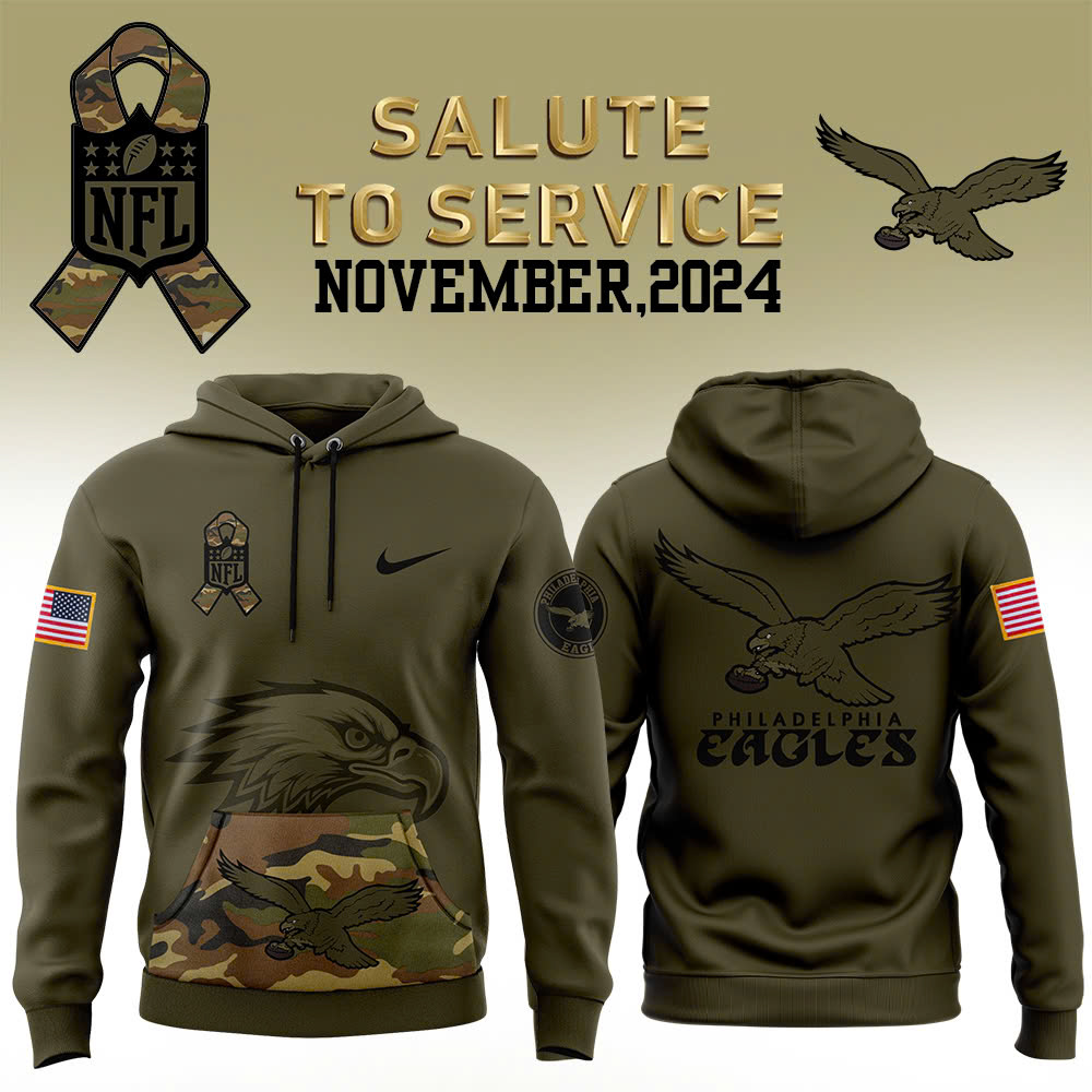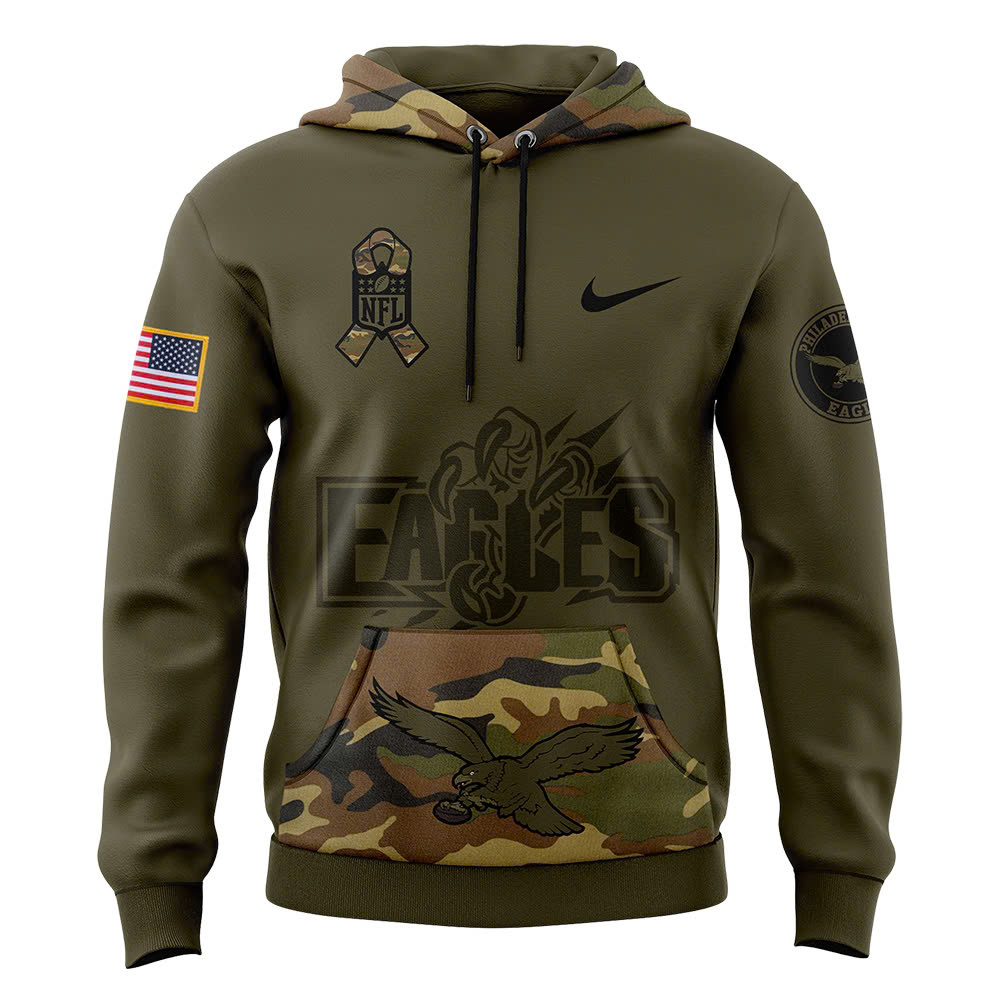 Philadelphia Eagles Camo Salute to Service Club Fleece Pullover Hoodie V3