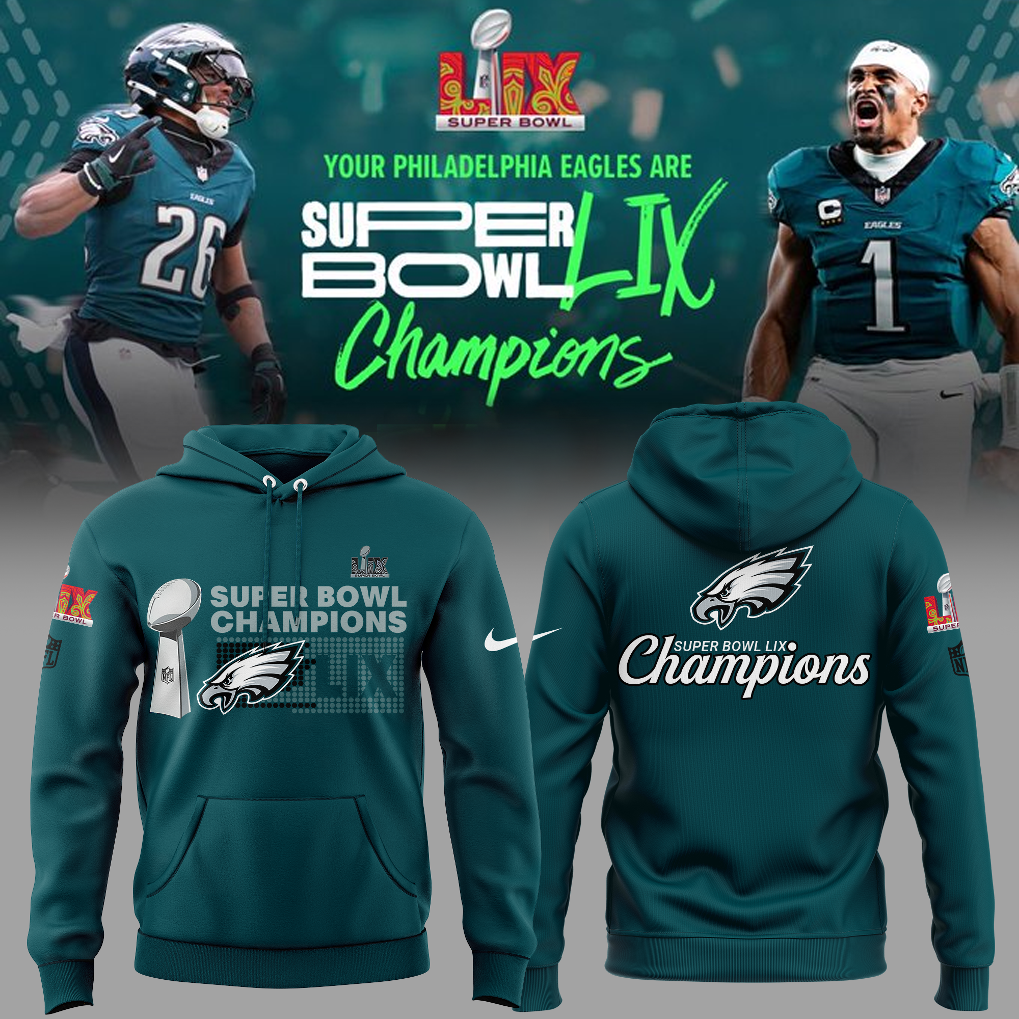 Philadelphia Eagles CHAMPIONS SUPER BOWL LIX Hoodie