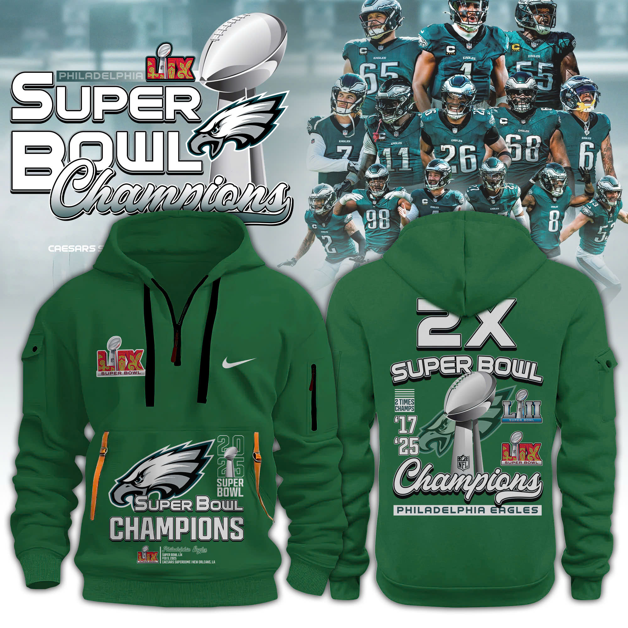 Philadelphia Eagles Super Bowl LIX Champions Hoodie Upgrade