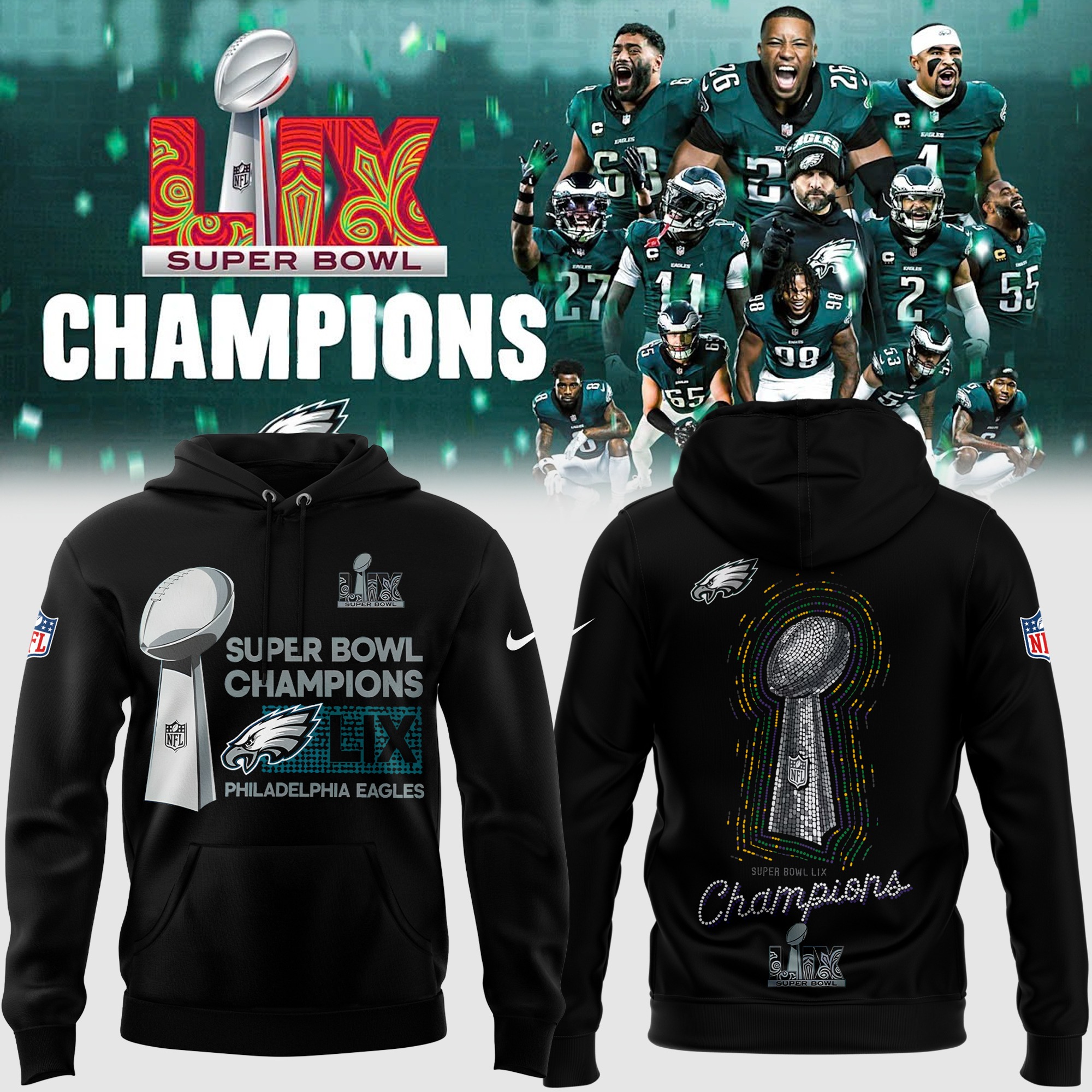Philadelphia Eagles Super Bowl LIX Champions Hoodie V3