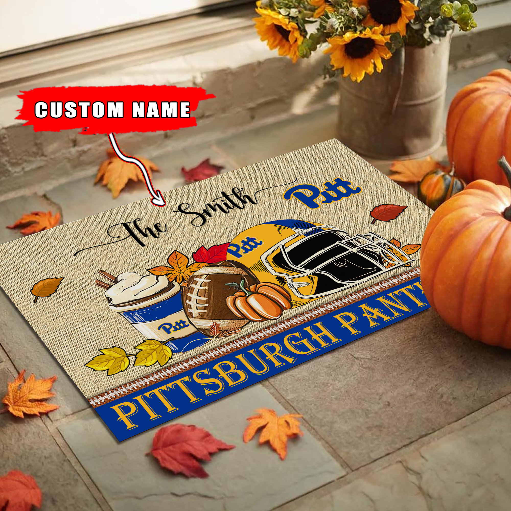 Pittsburgh Panthers Fall Football Custom Doormat – Custom Text