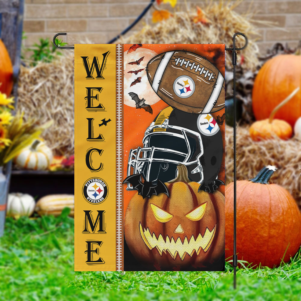 Pittsburgh Steelers Welcome Halloween Garden Flag, House Flag Double Sided Printed