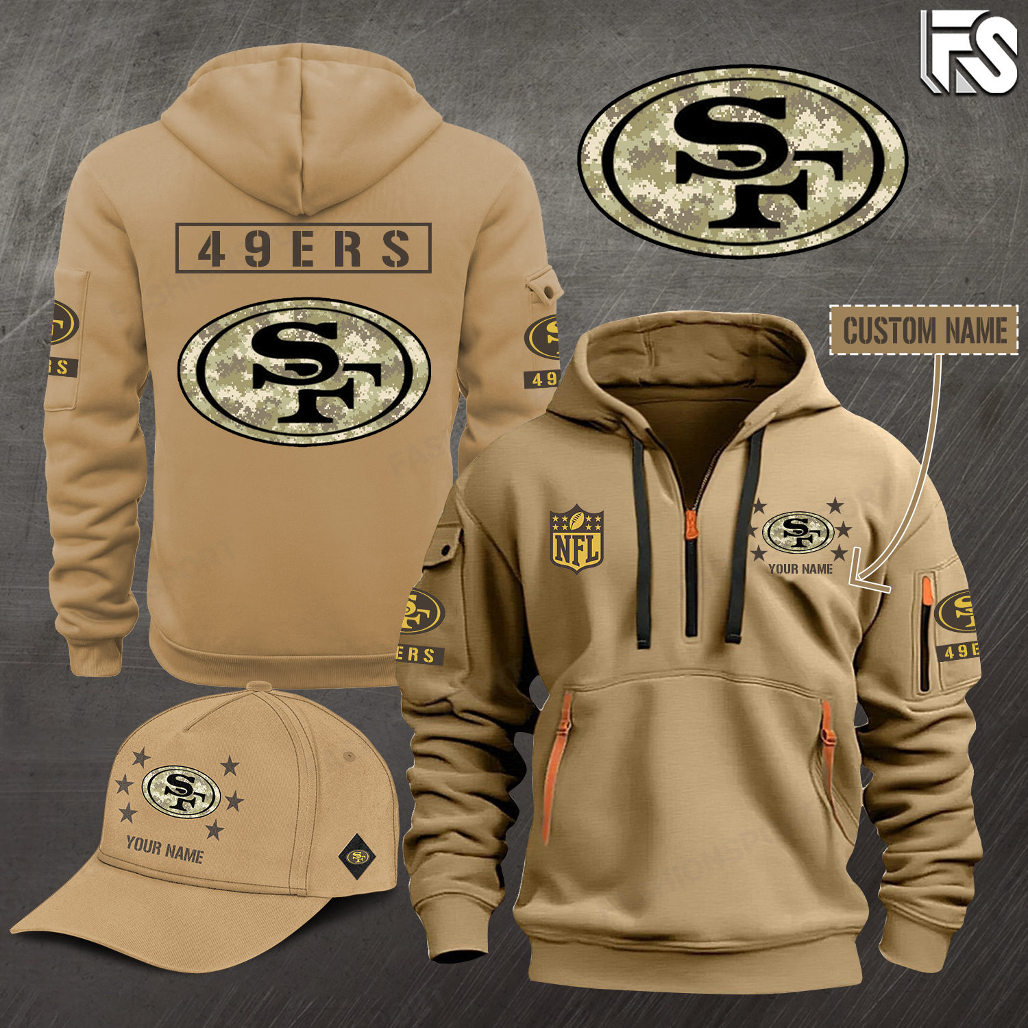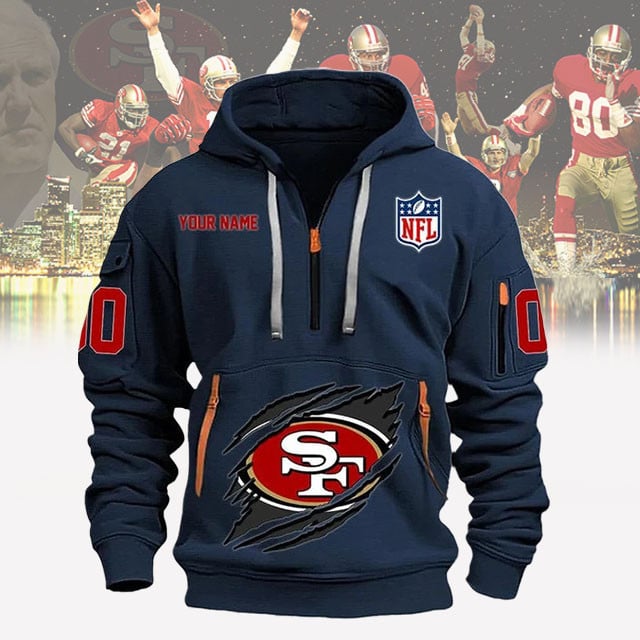 San Francisco 49ers New Personalized Quarter Zip Hoodie AZBTQZH000071