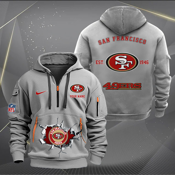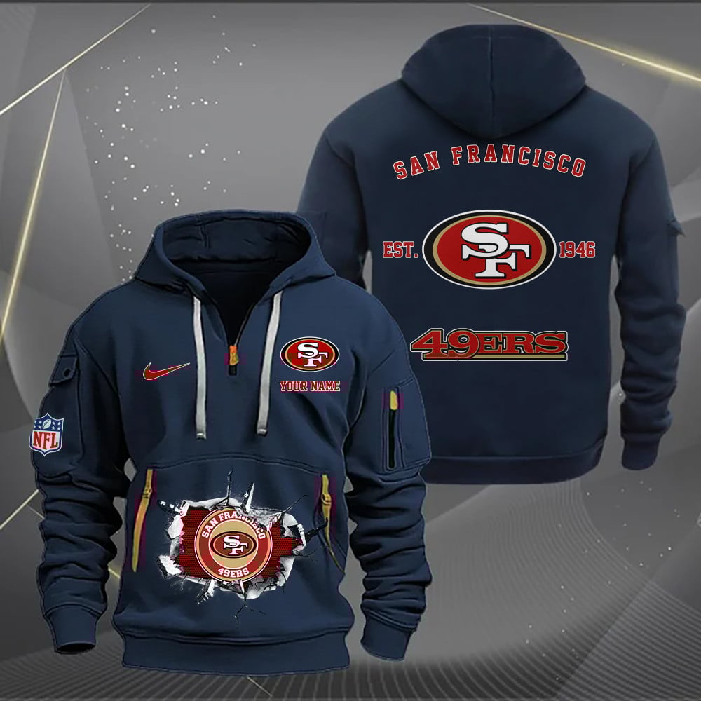 San Francisco 49ers New Personalized Quarter Zip Hoodie AZBTQZH000130