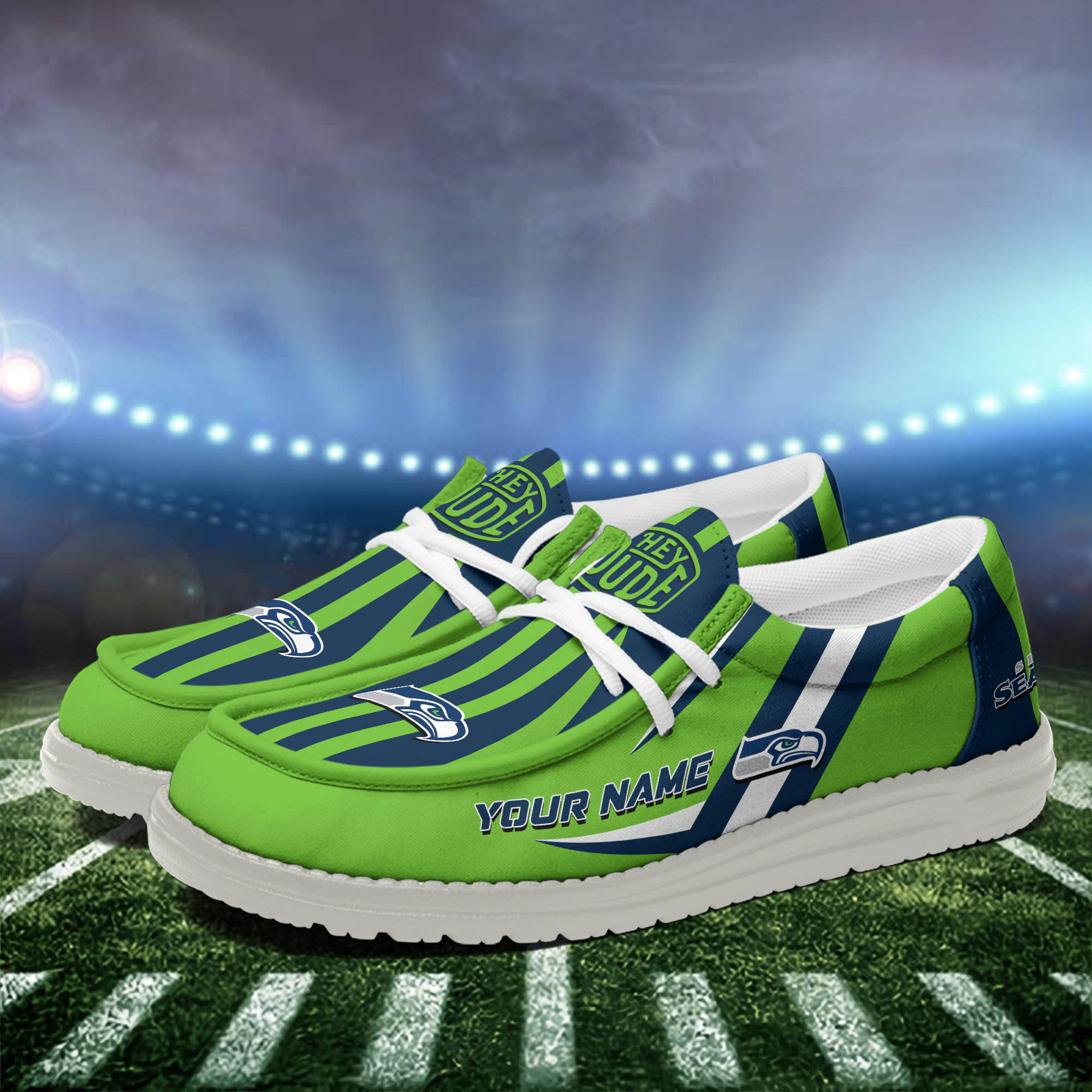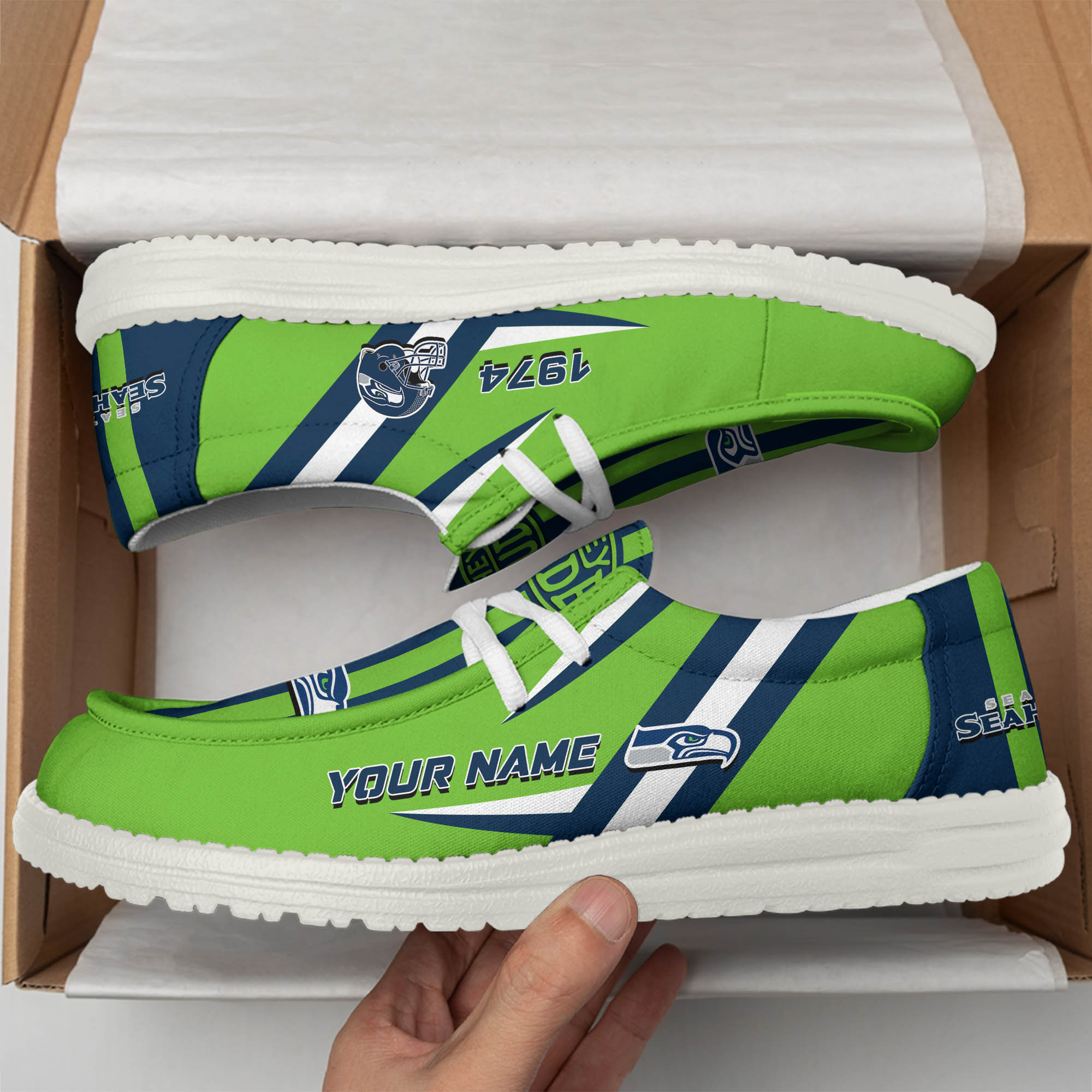 Seattle Seahawks Team White Canvas Loafer Shoes Personalized Your Name