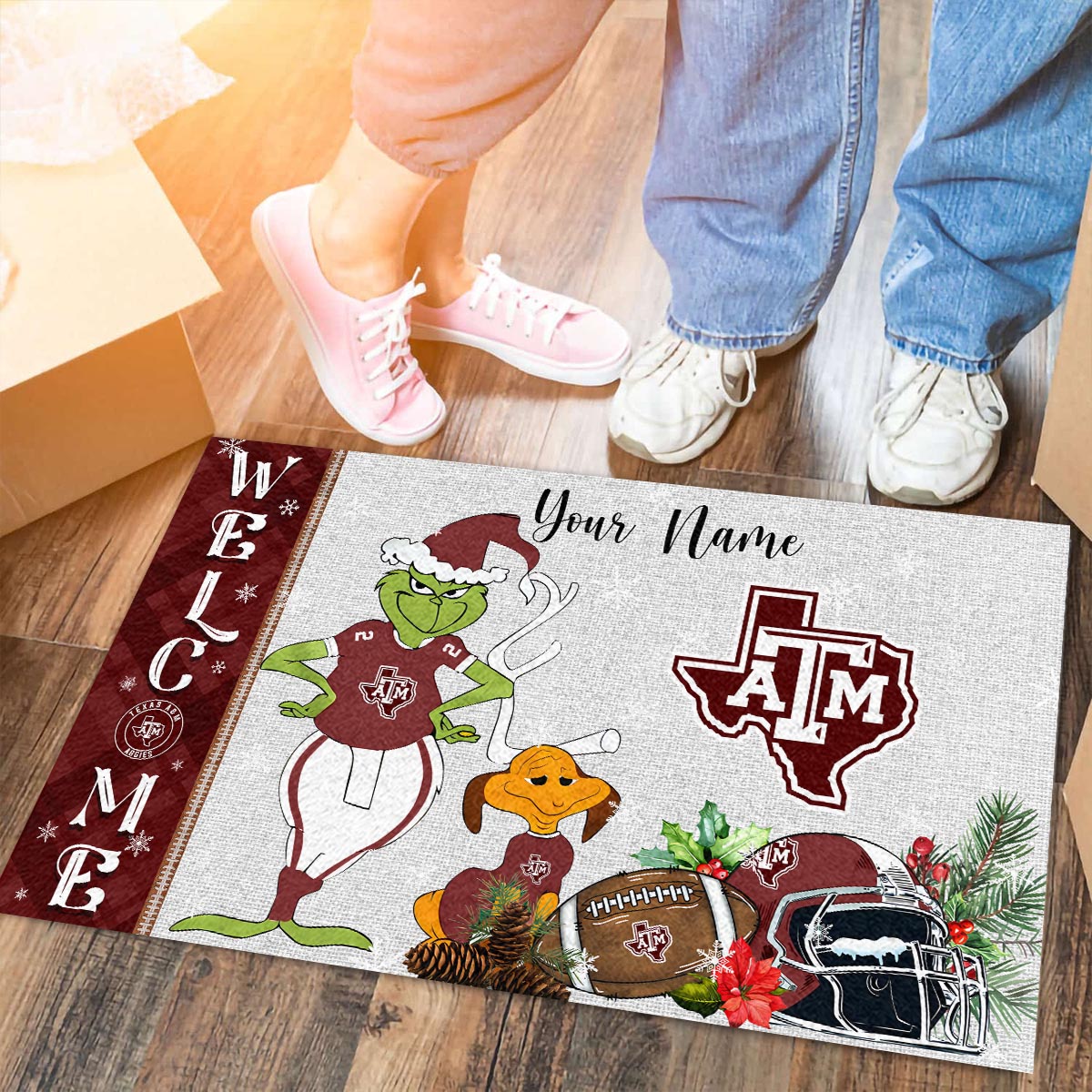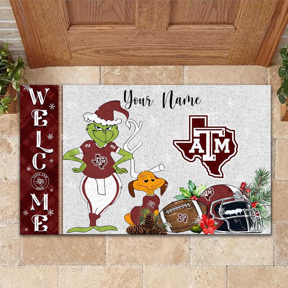 Texas A&M Aggies Grinch Christmas Welcome Football Doormat