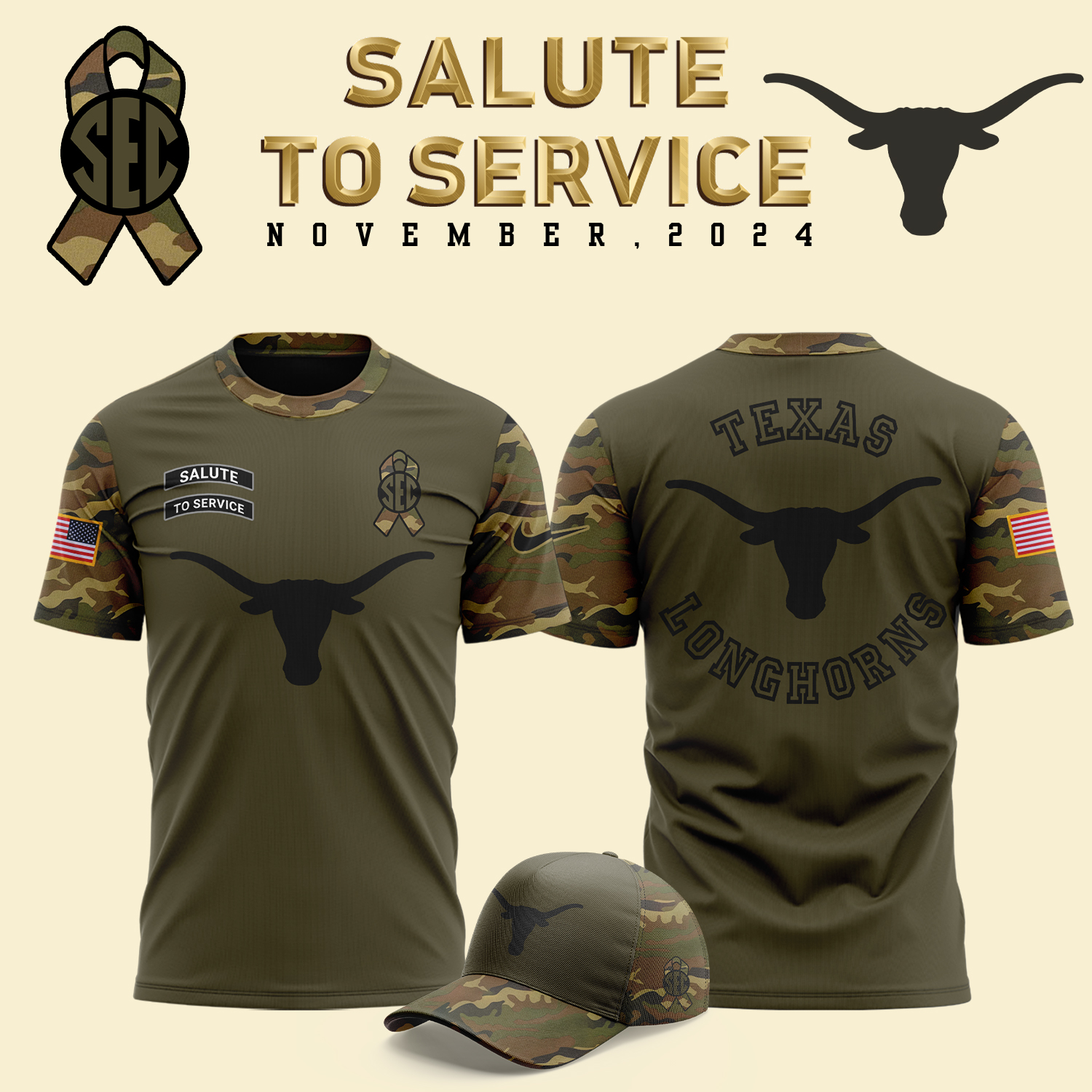 Texas Longhorns Camo Salute to Service Hoodie V2